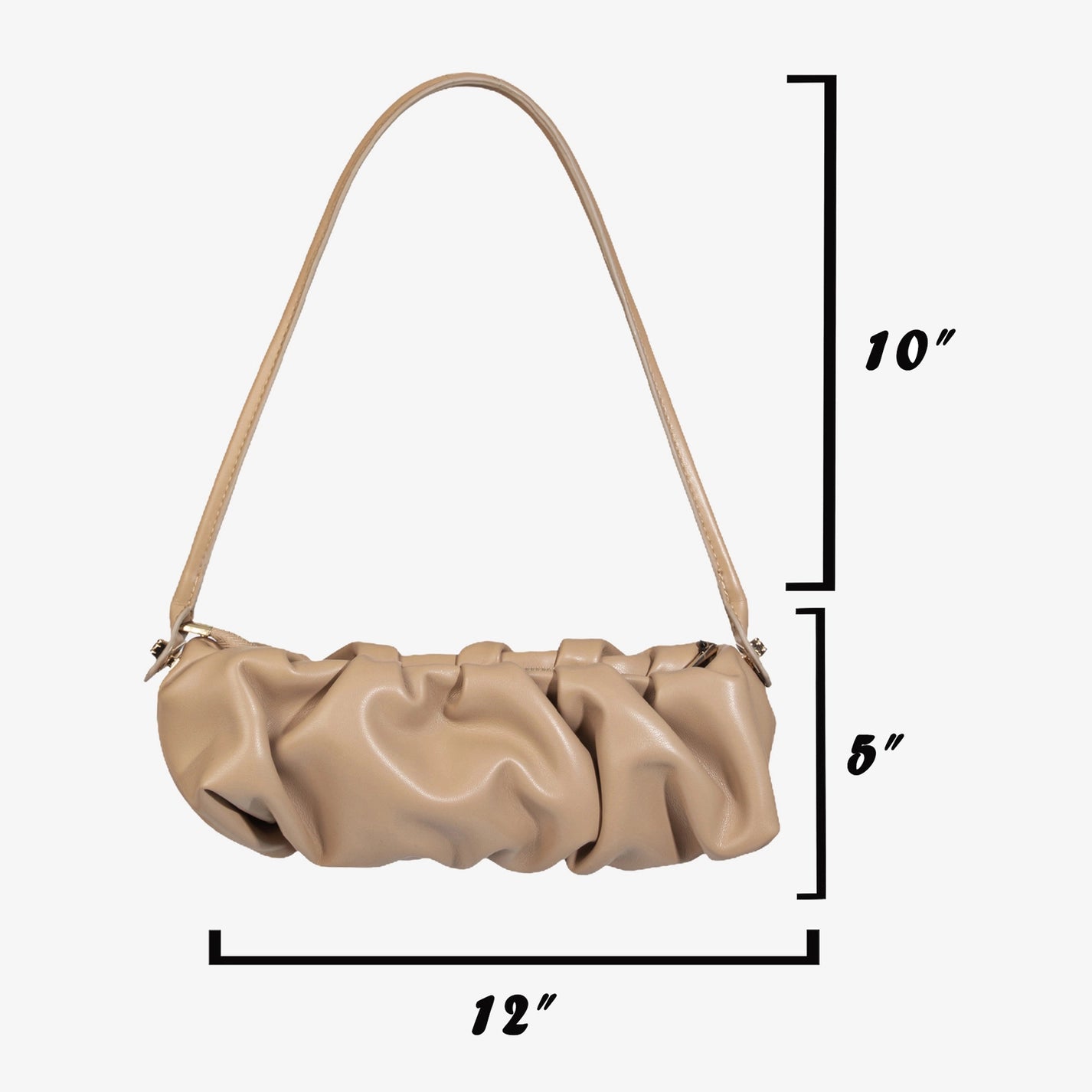 Indulge in the luxurious feel of the Ivory Faux Leather Rectangle Scrunch Fashion Bag - the perfect accessory for any fashion-forward individual! Elevate your style with this trendy and versatile bag that adds a touch of elegance to any outfit. Don't miss out on this must-have fashion statement!