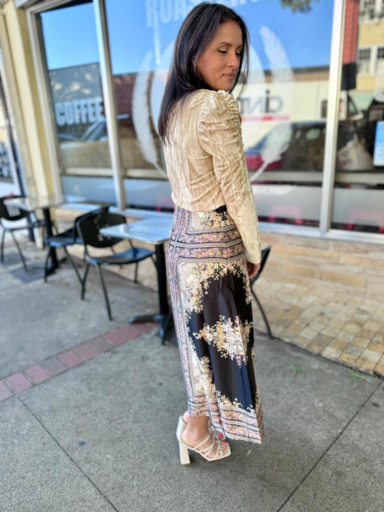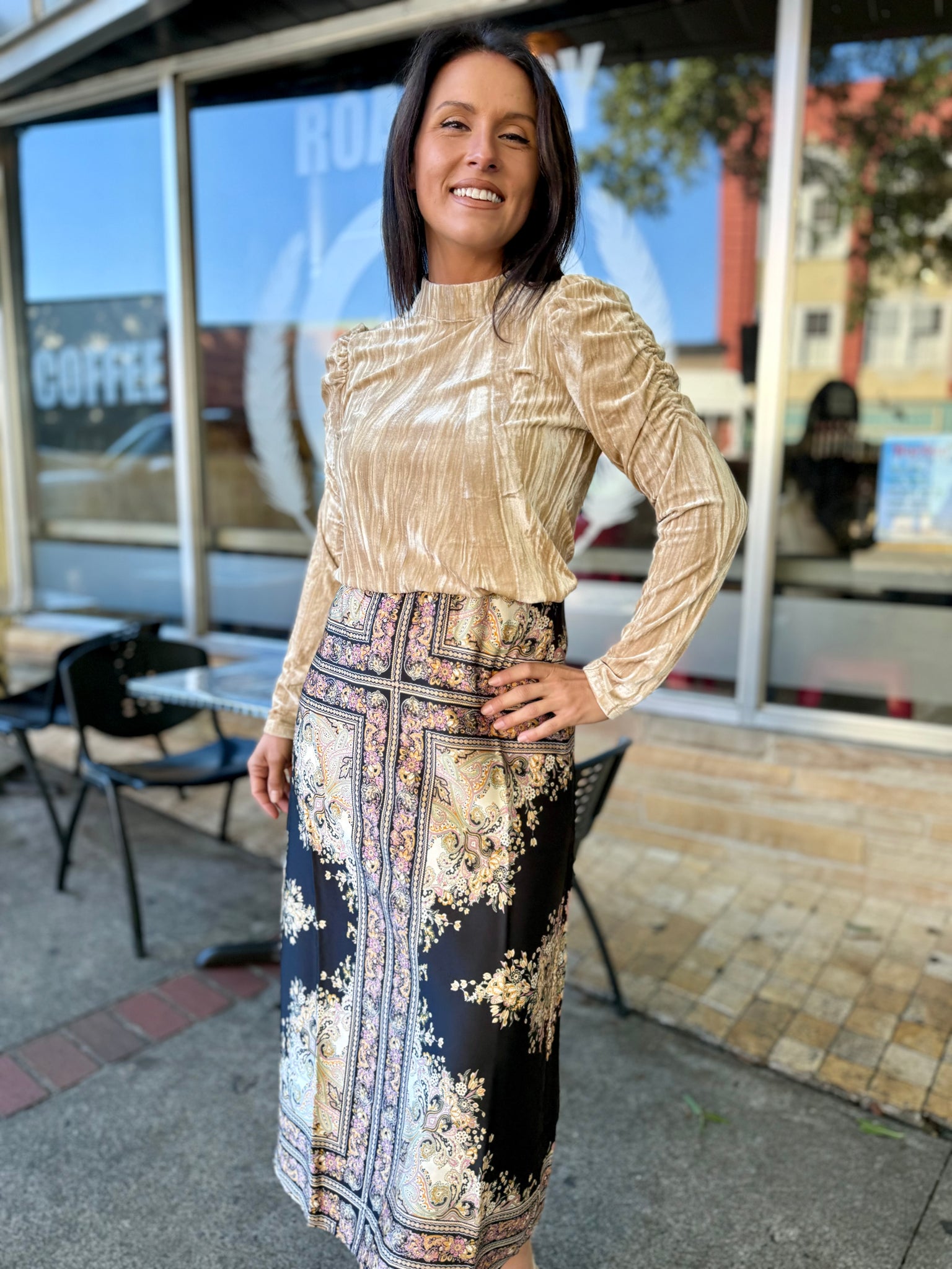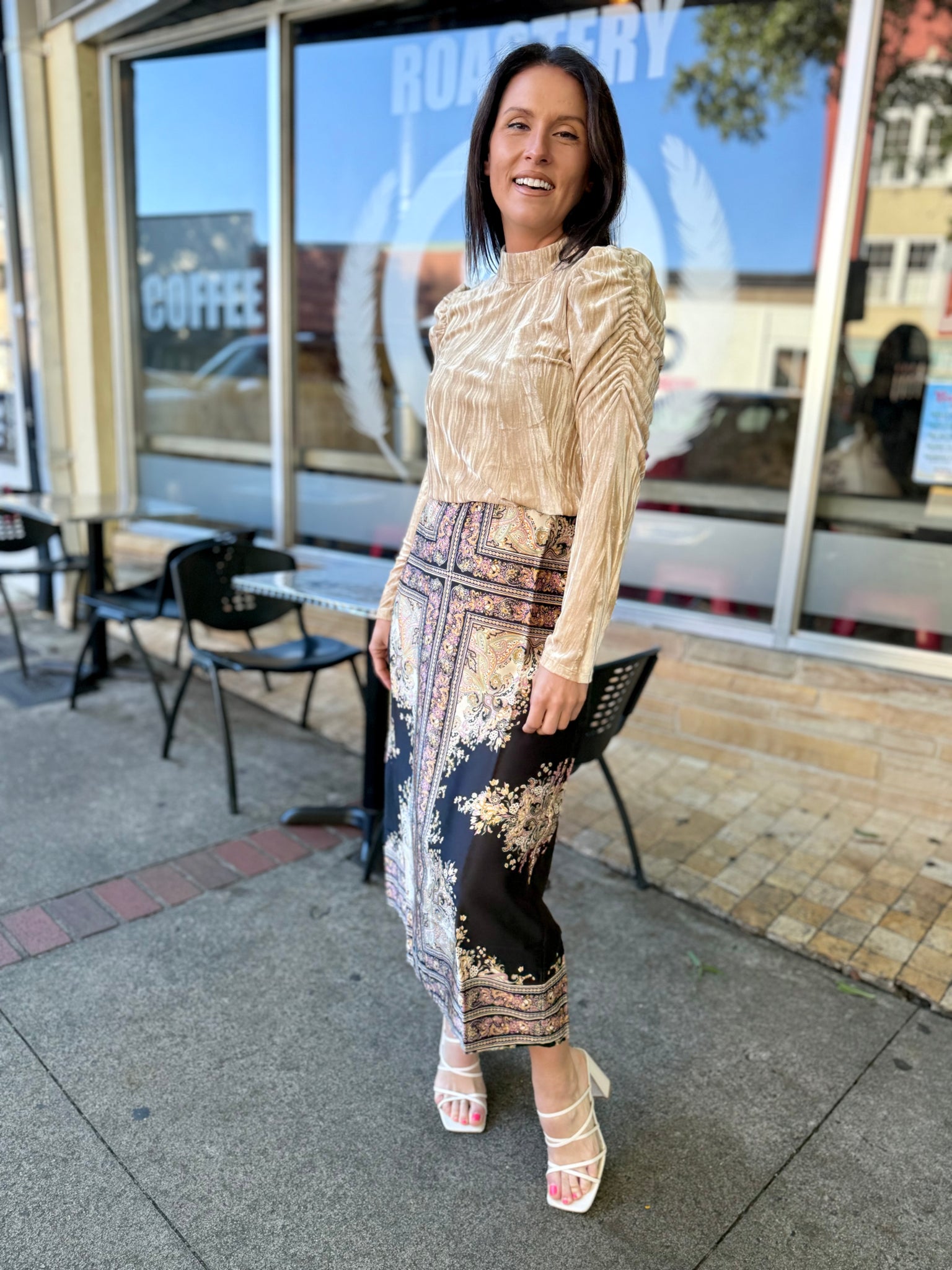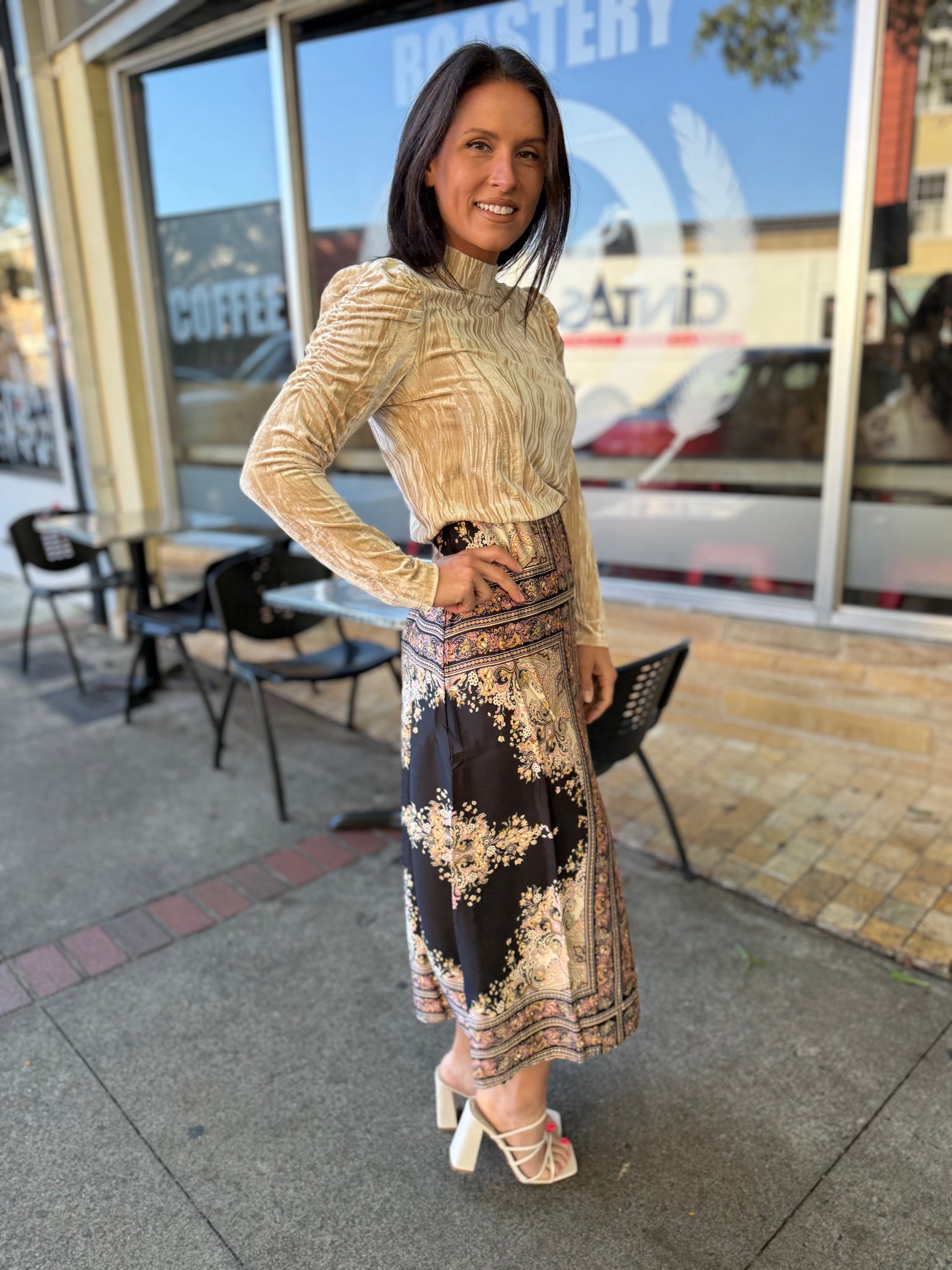 Make a bold statement with our aztec midi skirt. This eye-catching piece features a vibrant Aztec pattern that blends traditional motifs with contemporary style. Crafted from lightweight fabric, it offers a comfortable fit while flowing gracefully as you move. The midi length is perfect for transitioning between seasons, allowing for versatile styling options. Pair it with a fitted top and ankle boots for a chic, bohemian look, or dress it up with a blouse and heels for a night out. Elevate your wardrobe with this unique skirt that adds a touch of cultural flair to any ensemble.