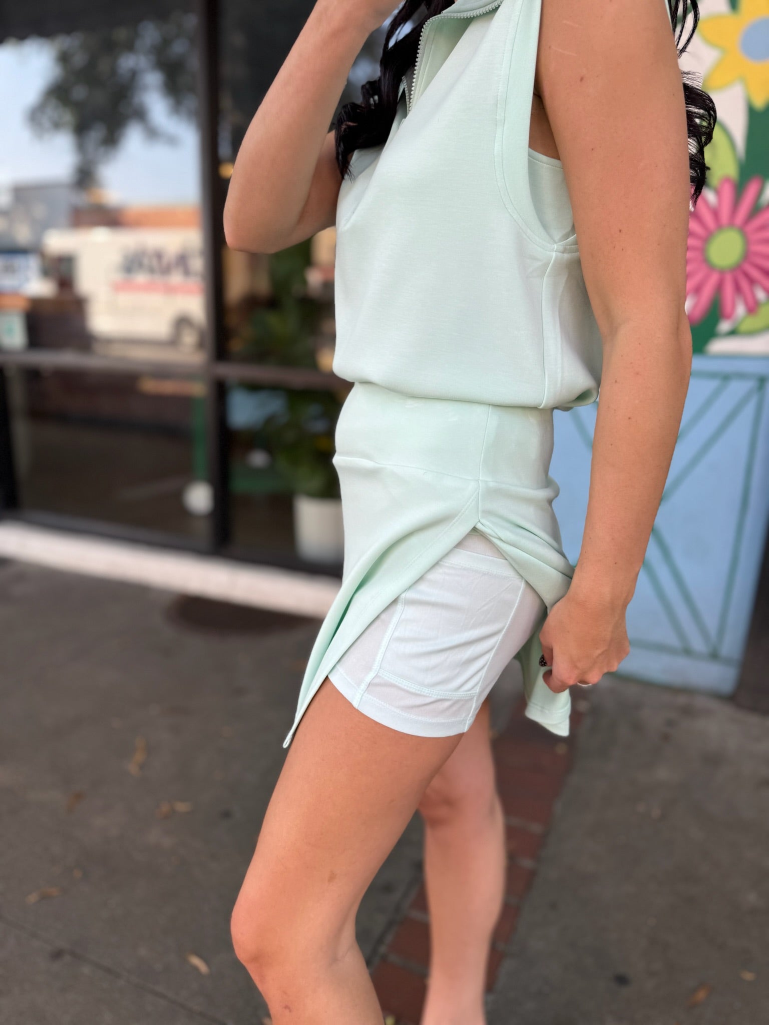 Meet your new sporty BFF — the Mint Breeze Active Skirt! This refreshing pop of pastel blue brings both fun and function to your wardrobe. With its flattering wide waistband and flirty A-line cut, this skirt is made to move — whether you're hitting the tennis courts, running errands, or just catching sunshine on a walk.