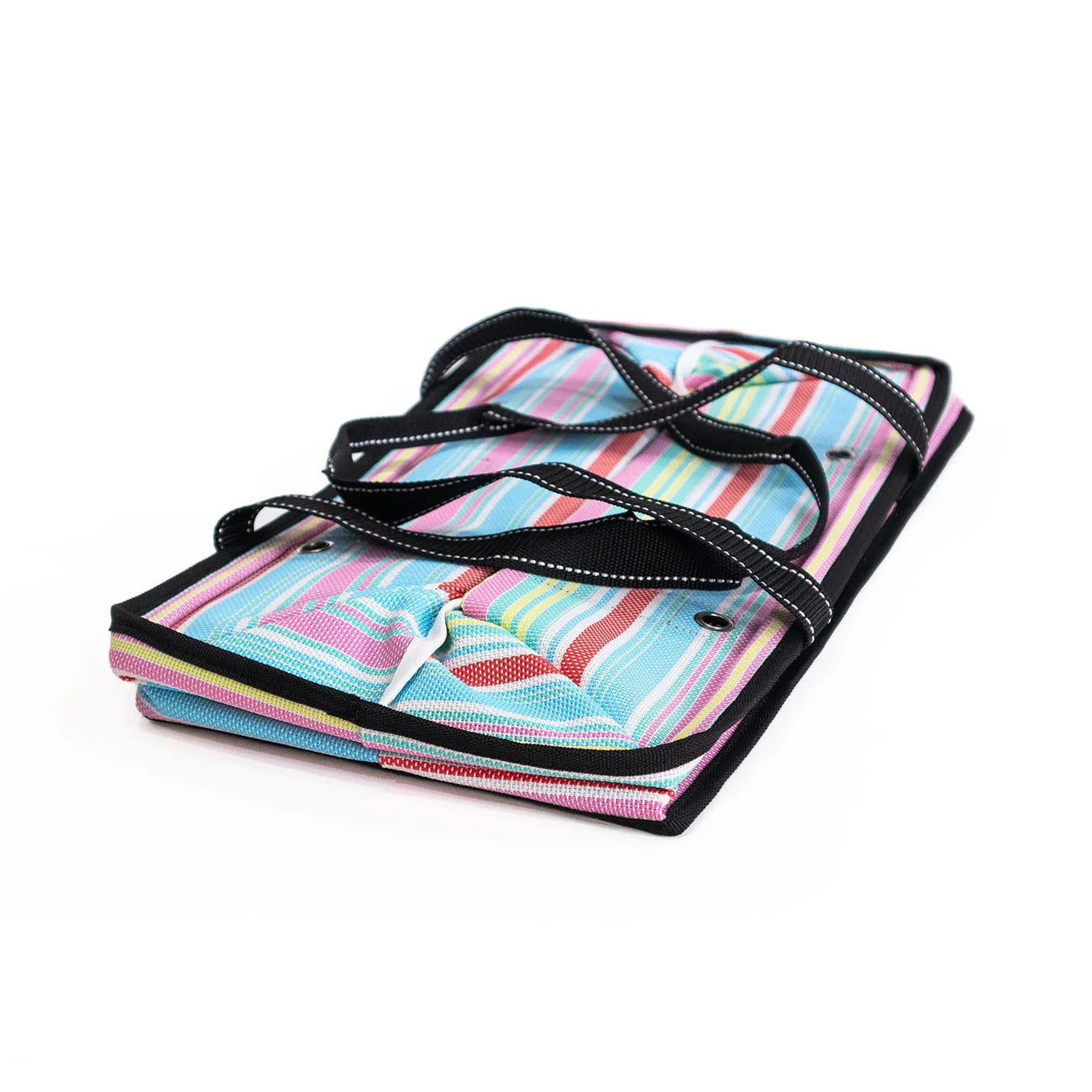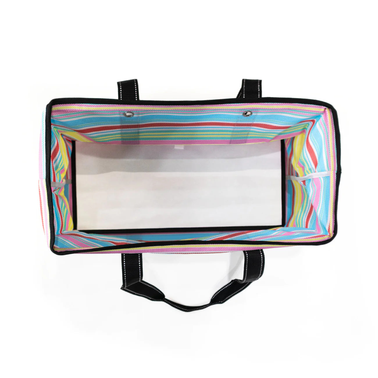 This big, horizontal bag, featuring a wire-reinforced top edge for structure, has an irresistibly smooth, soft, pliable feel and no hard edges in sight. Comfortably carry or store towels, blankets, sports gear, clothing, you name it. Compresses flat.