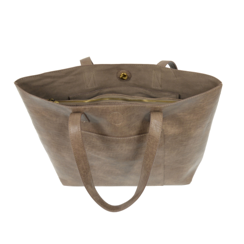 CRAFTED FROM RICH BUFFALO GRAIN VEGAN LEATHER, THIS OVERSIZED TOTE HAS A CASUAL VIBE. THREE INTERIOR COMPARTMENTS ENHANCE THE ORGANIZATIONAL APPEAL, AND THE CONVENIENT FRONT POCKET KEEPS YOUR PHONE, KEYS, AND ESSENTIALS WITHIN EASY REACH.