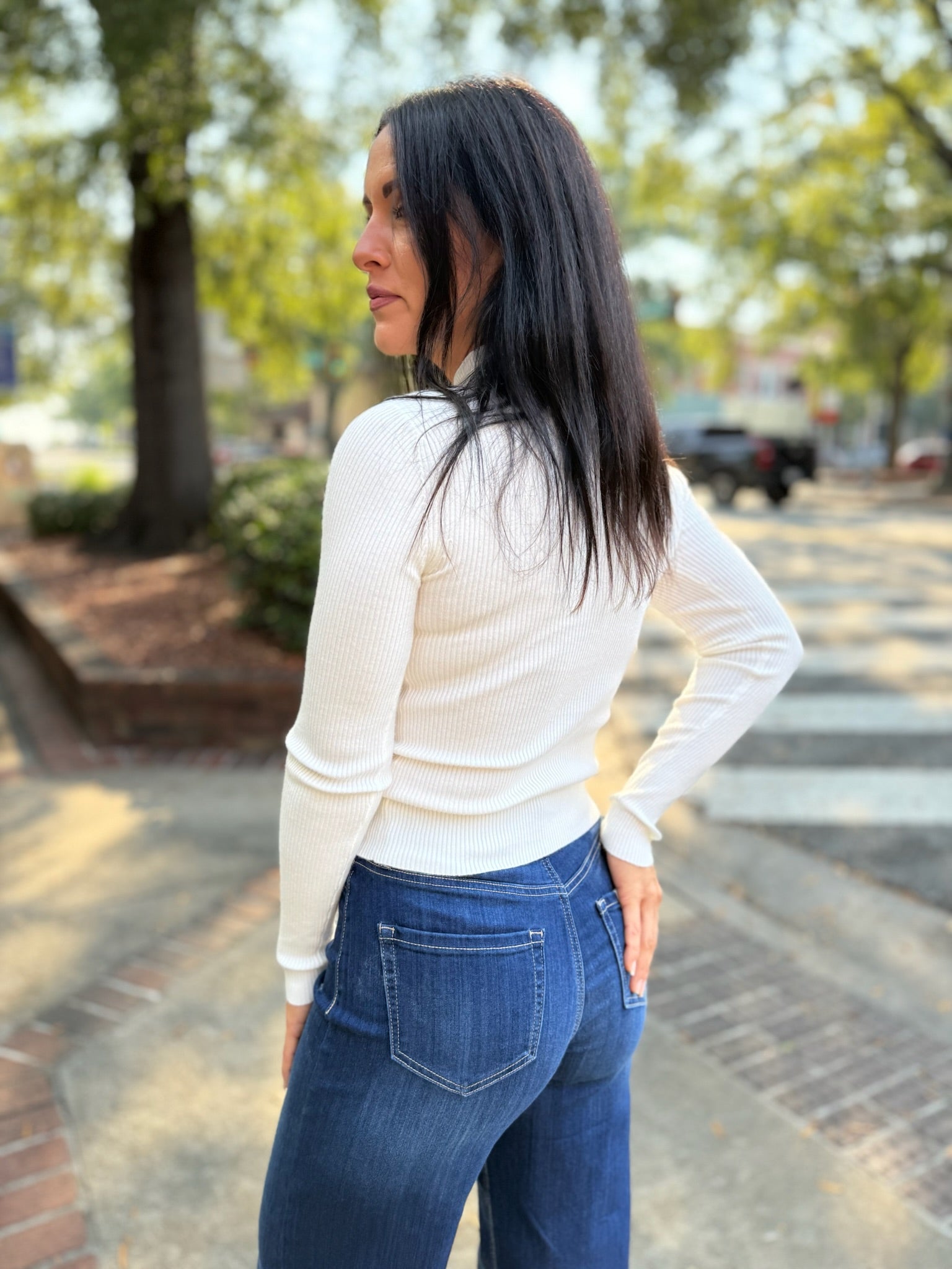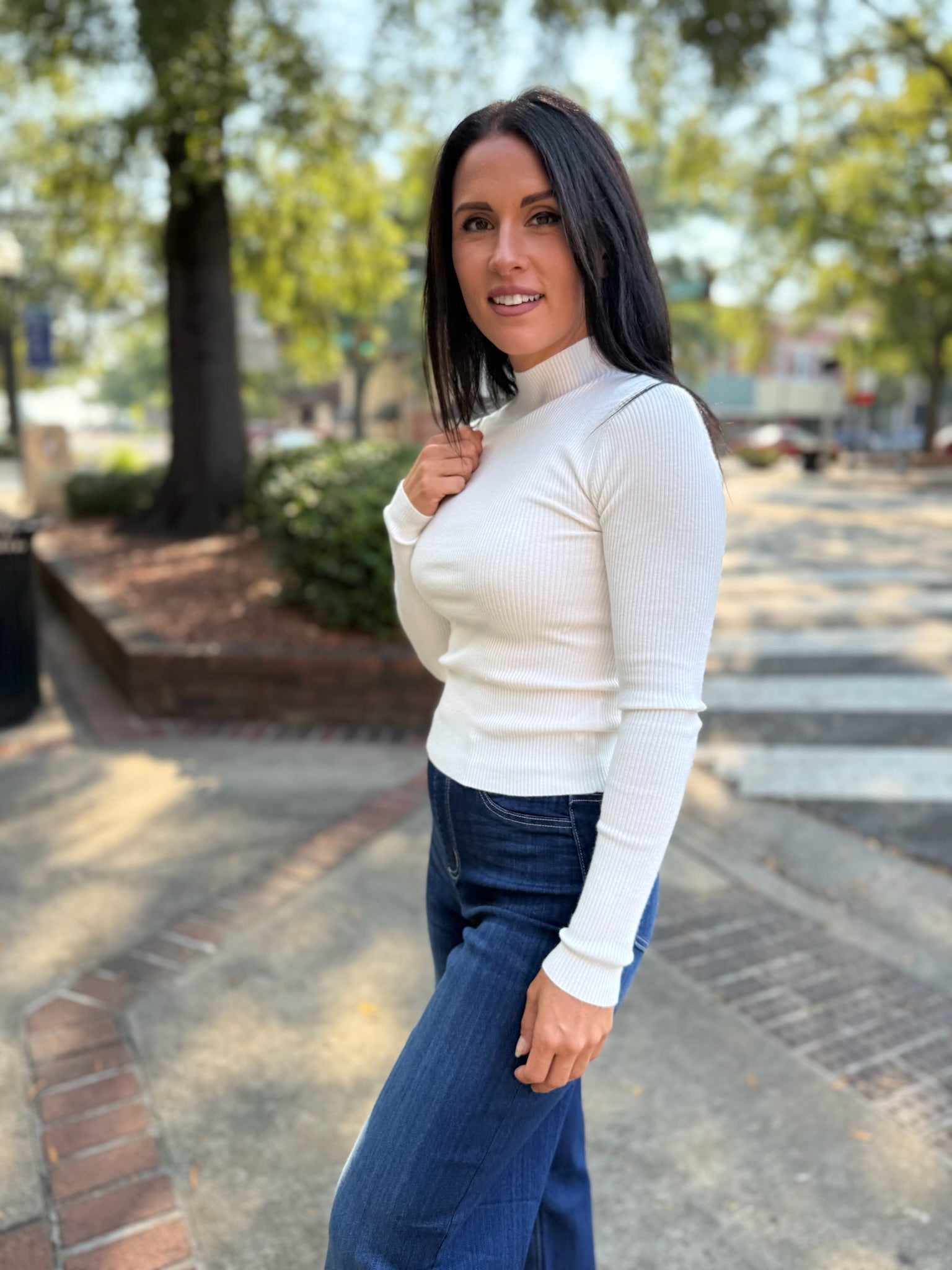 Cream Turtleneck Long Sleeve Fitted Top