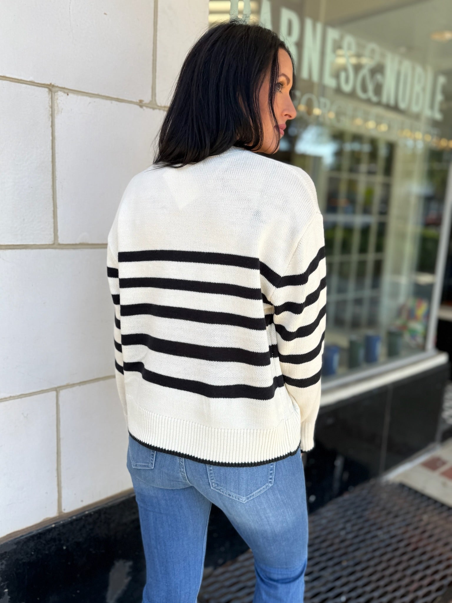 Off White Striped Casual Crew Neck Soft Sweater