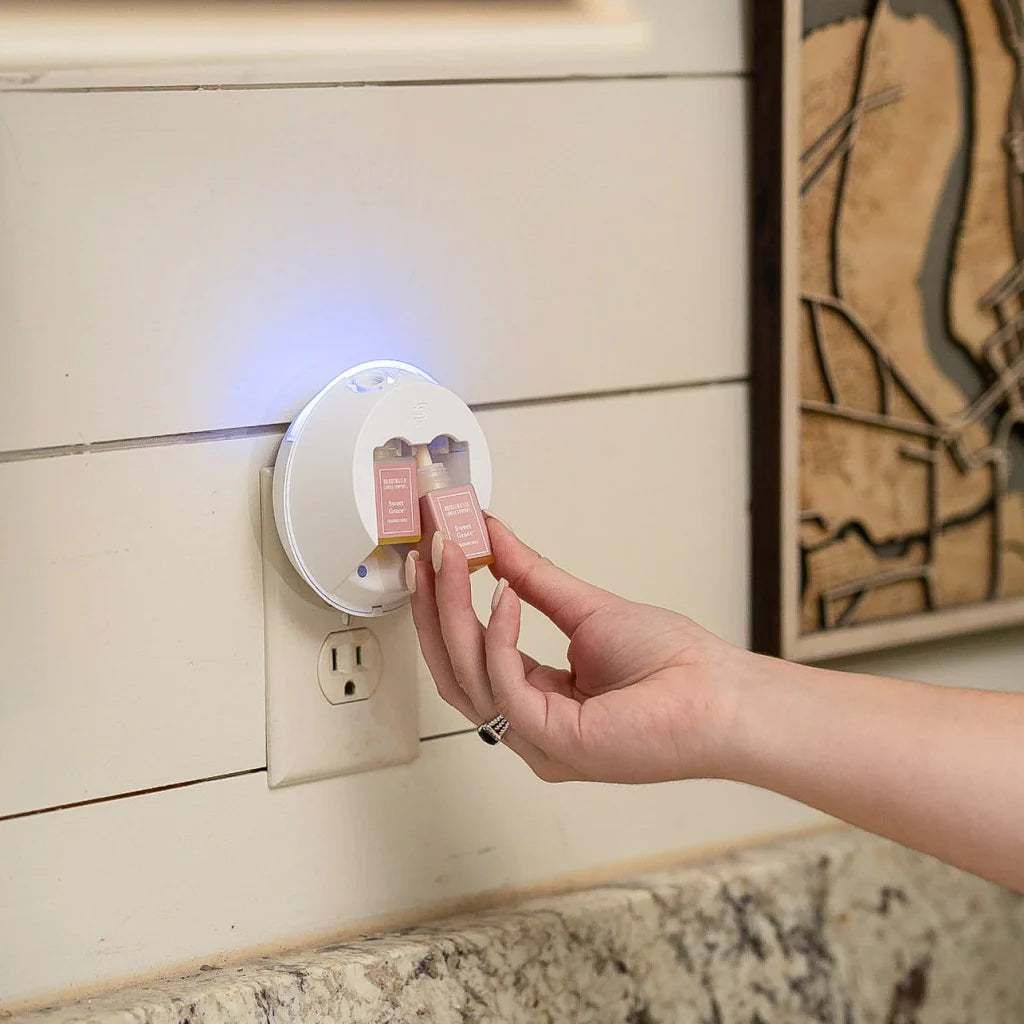 Pura + Bridgewater Smart Home Diffuser Set with Smart Vials for Ultimate Scent Control! - Sleek design, 500 sq ft coverage. - Pura app for scent control. - Swap scents with Smart Vial clips. - Climate-controlled diffusion for consistent aroma. Kit Includes: - Smart Home Fragrance Diffuser by Pura - 2 Sweet Grace Fragrance Vials Fragrance: Sweet Grace Fragrance Family: Oriental & Spice Fragrance Description: With exotic passion fruit, sparkling tea, and classic patchouli, Sweet Grace is undeniably warm, peaceful, and pure.