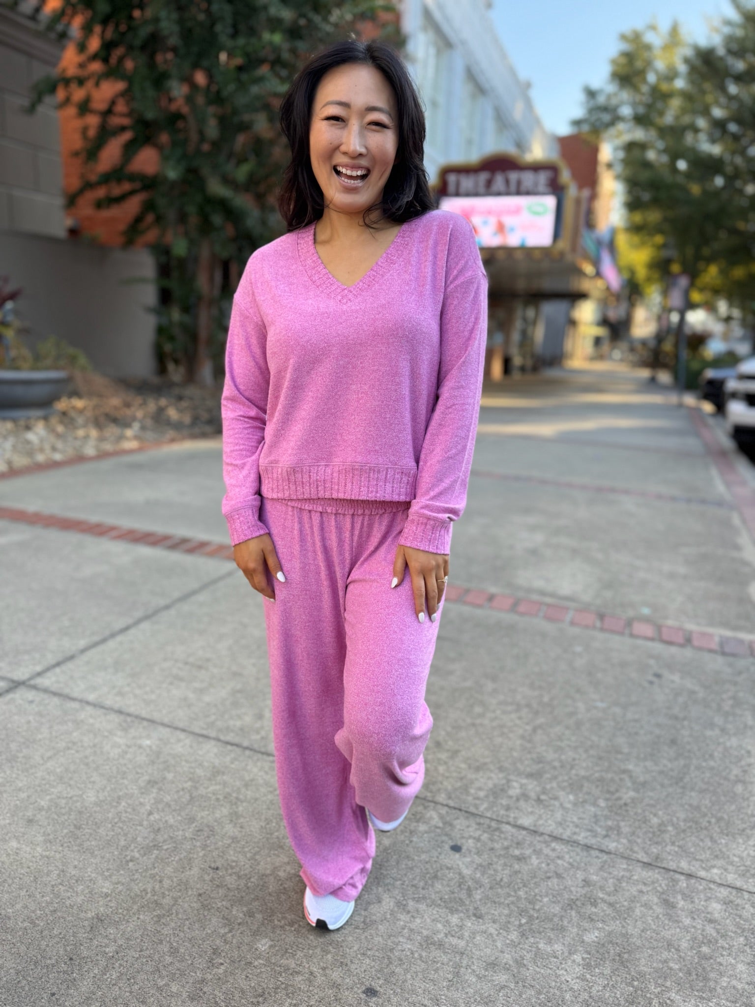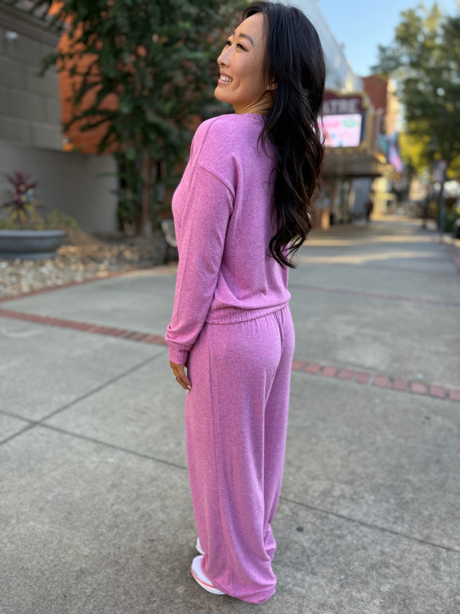 The Courtney LS Top is the cuddle-worthy classic your loungewear dreams are made of—soft, relaxed, and oh-so-pretty in Sweet Plum. Its ribbed V-neck and hem add just the right amount of detail for a look that’s effortlessly elevated. Pair it with matching pants or your fave denim and prepare to radiate cozy confidence all day long.
