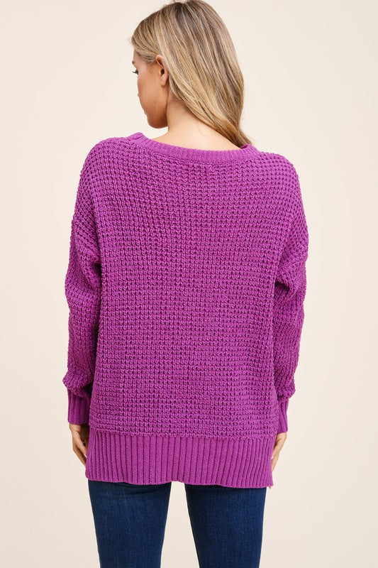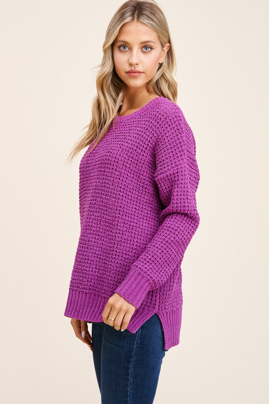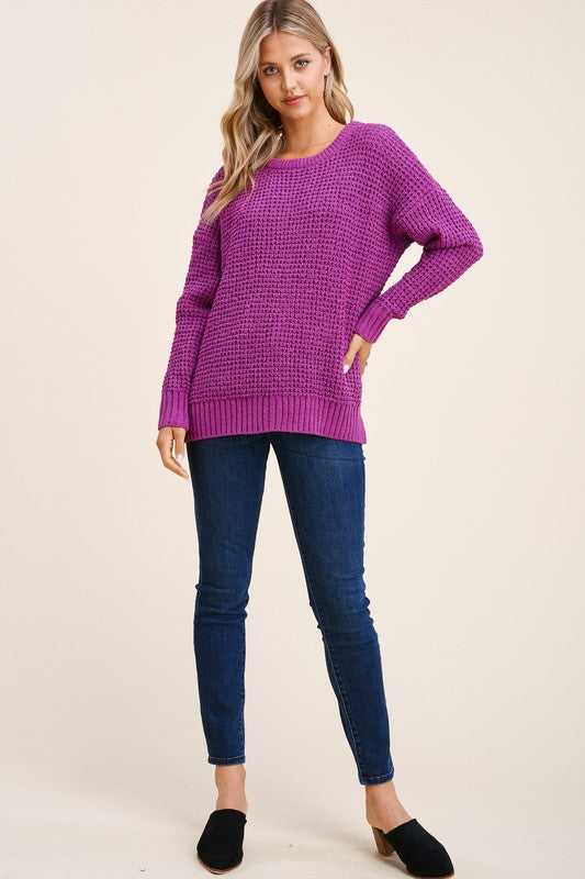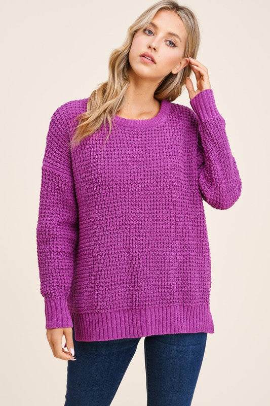 Waffle knit top in a beautiful magenta purple.
