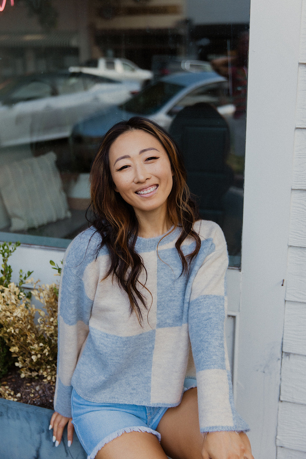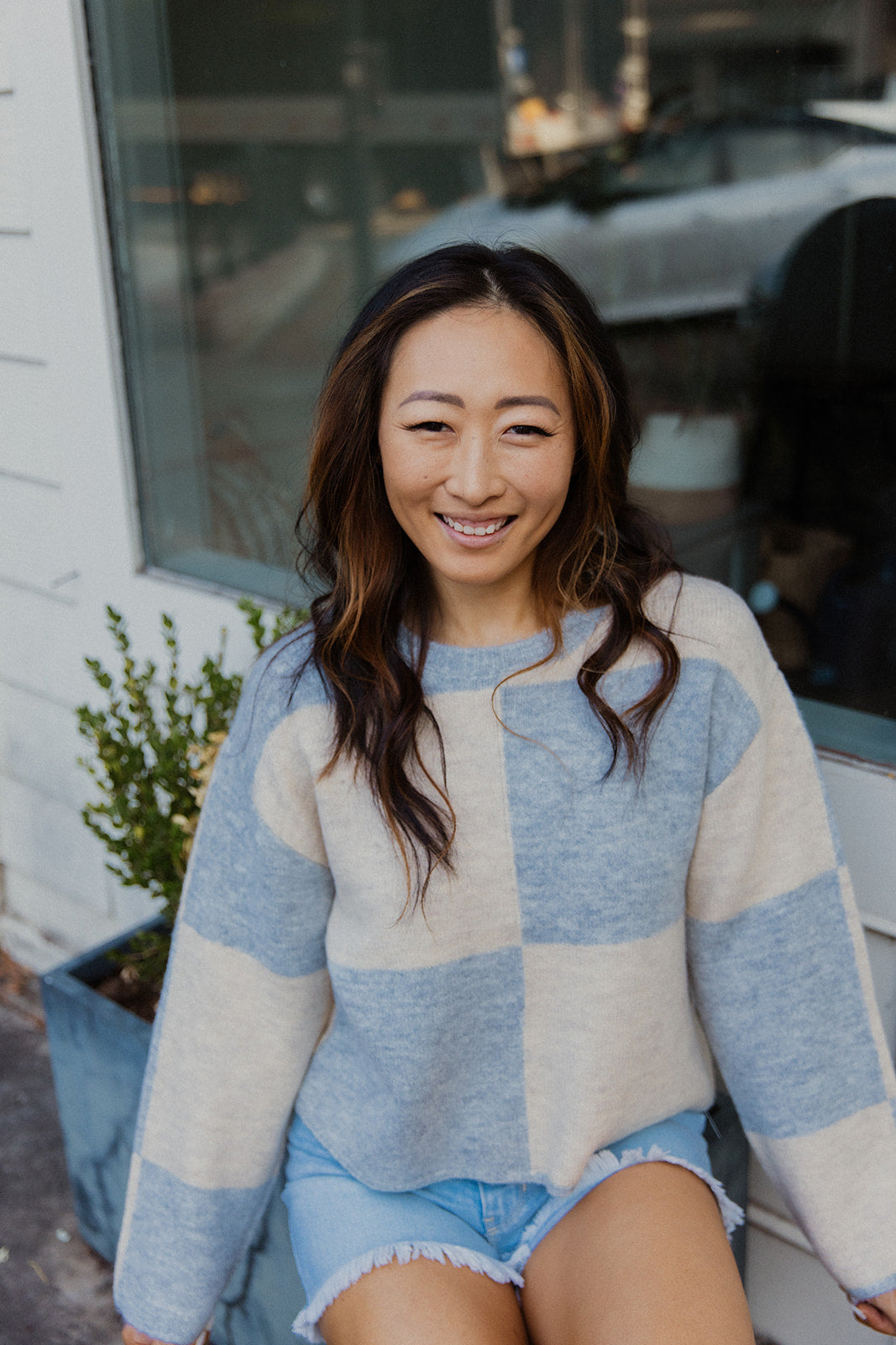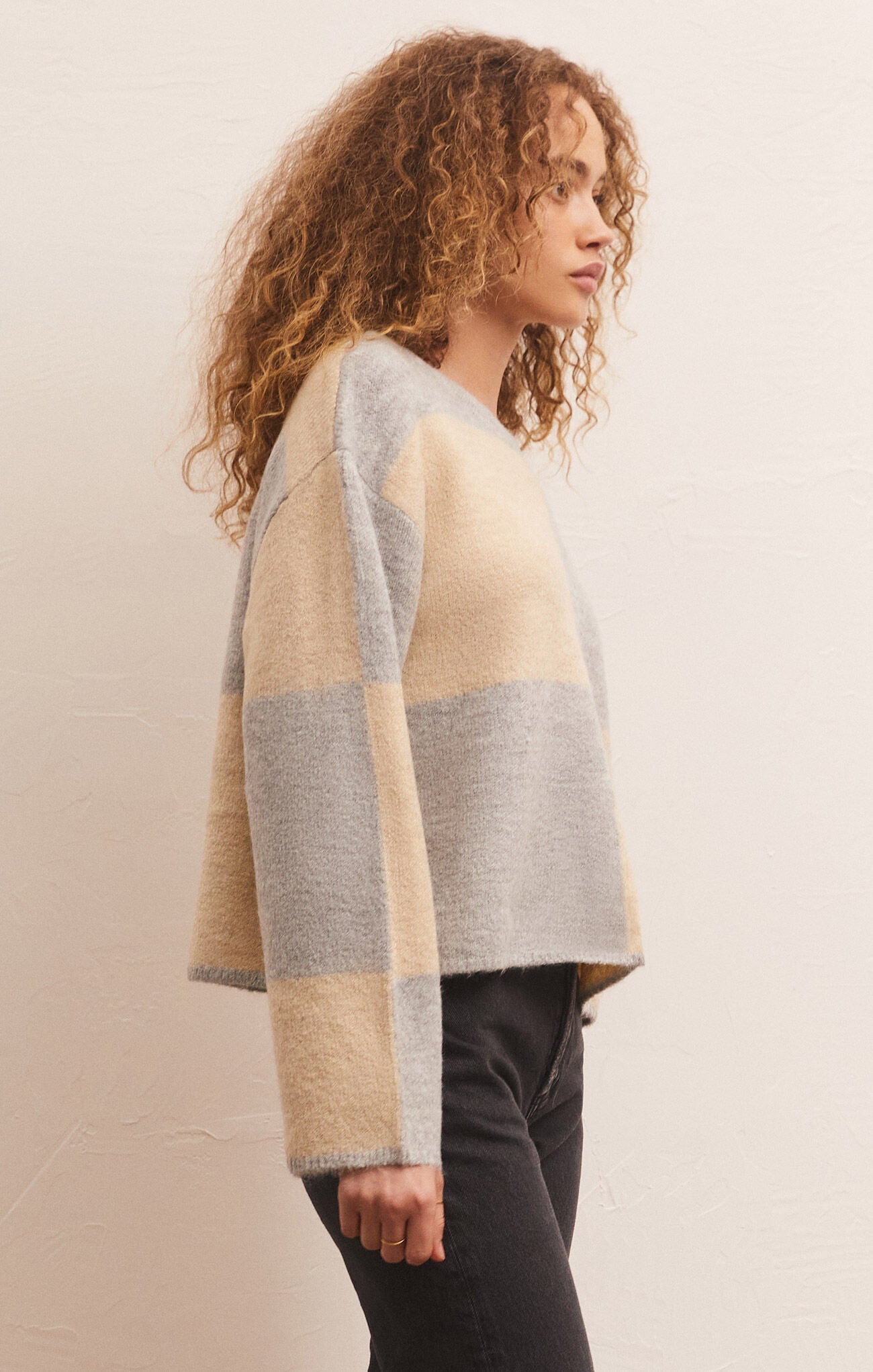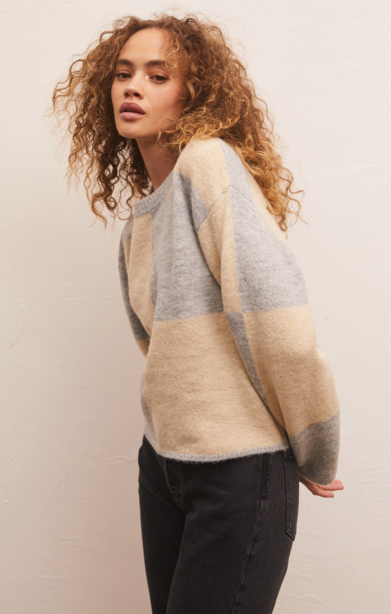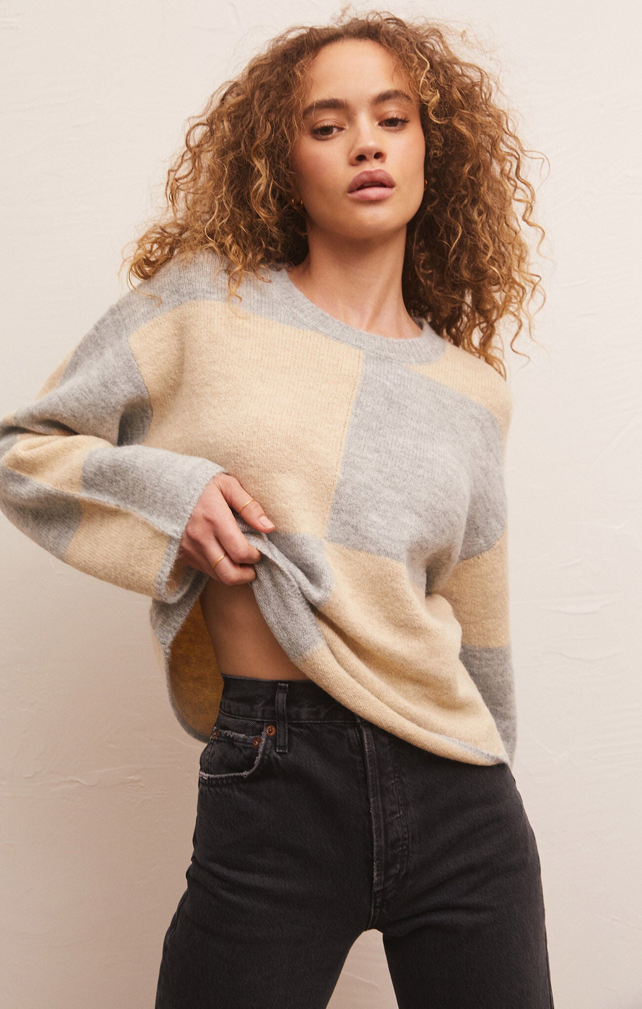 We're loving the oversize check design of the Rosi Blocked Sweater. Made using our chunky sweater yarns, this relaxed sweater features an easy fit, a wider sleeve opening, and hits at the waist. Fabric Content: 68% Acrylic 31% Polyester 1% Spandex