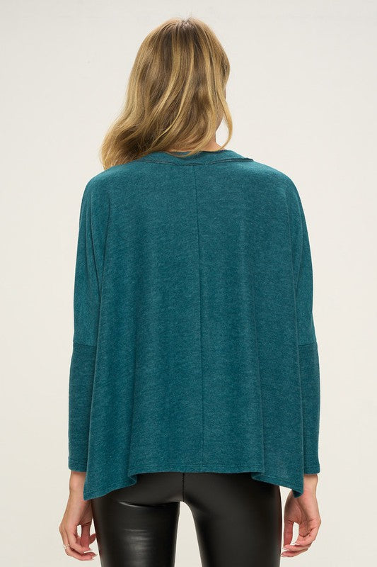 Relax Fit V Neck Long Sleeves Drop Shoulder Stitching Detail Brushed Knit Top