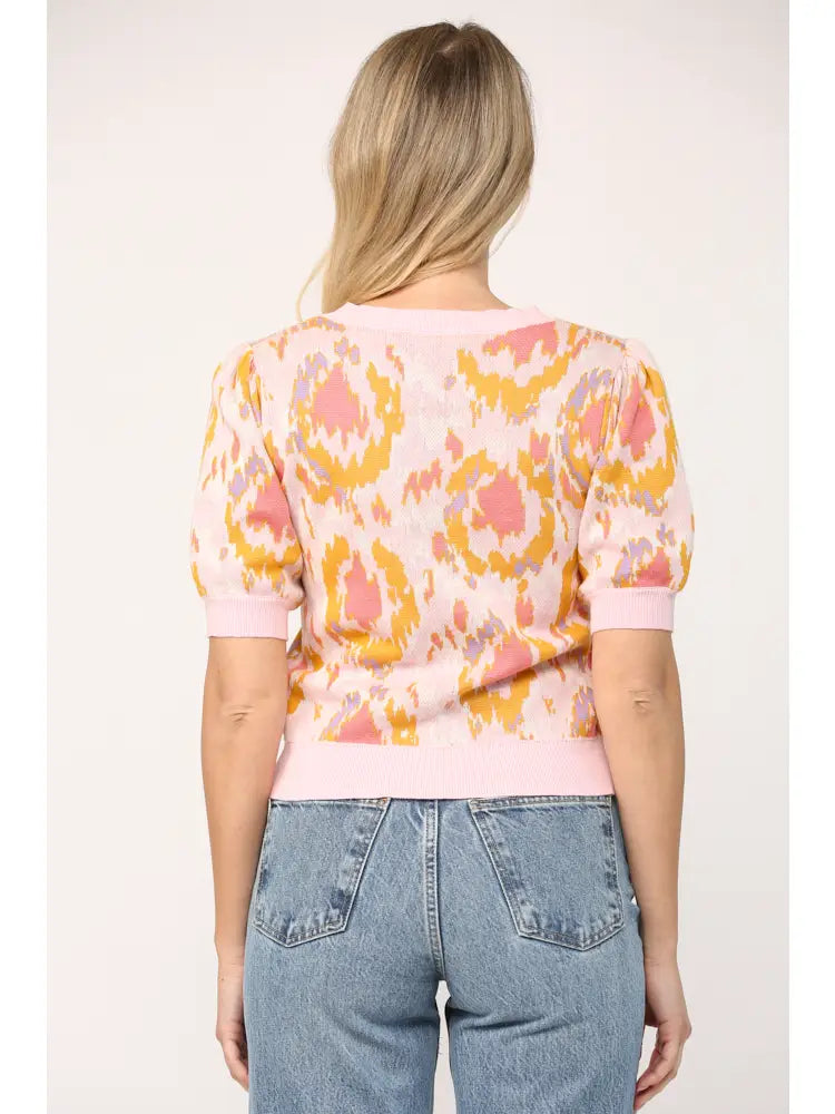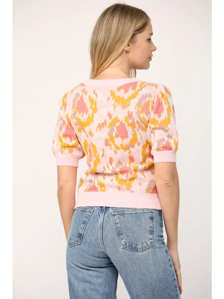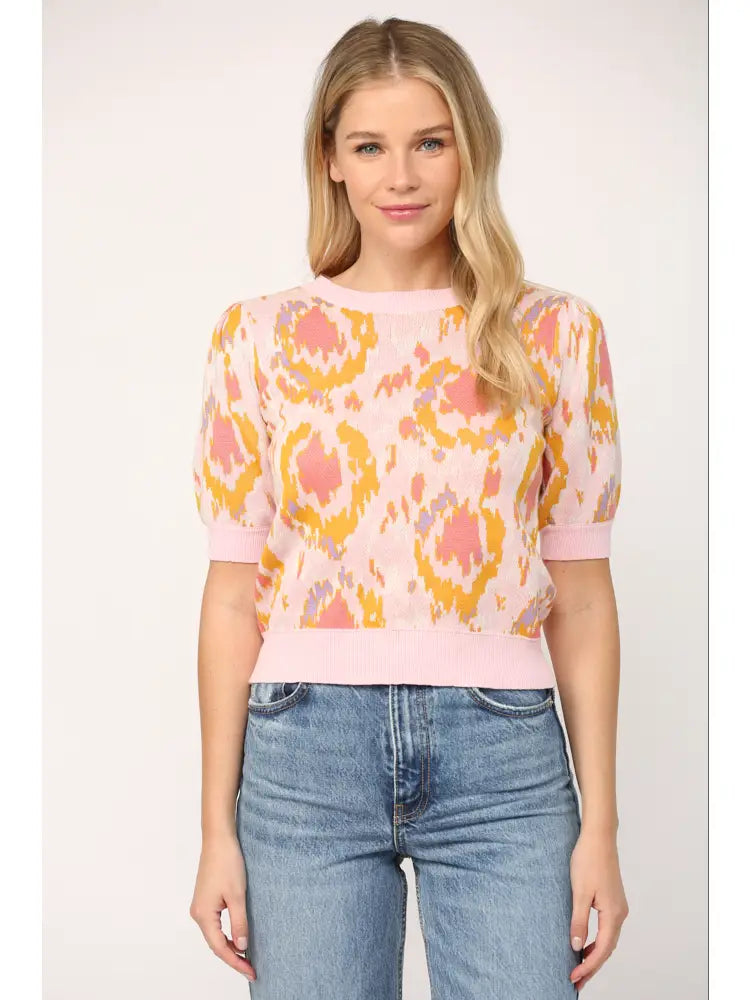 Pink, yellow and coral sweater top