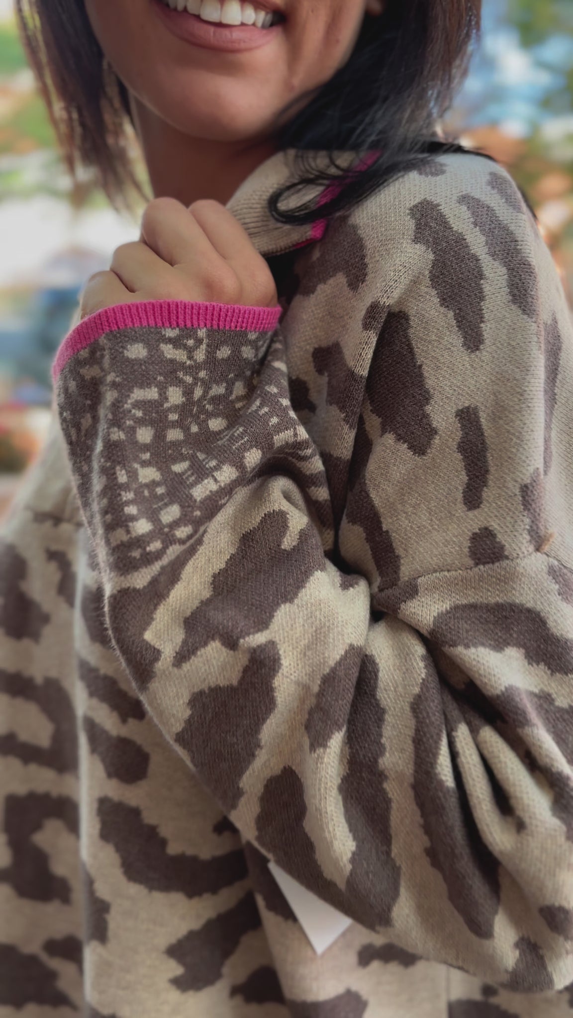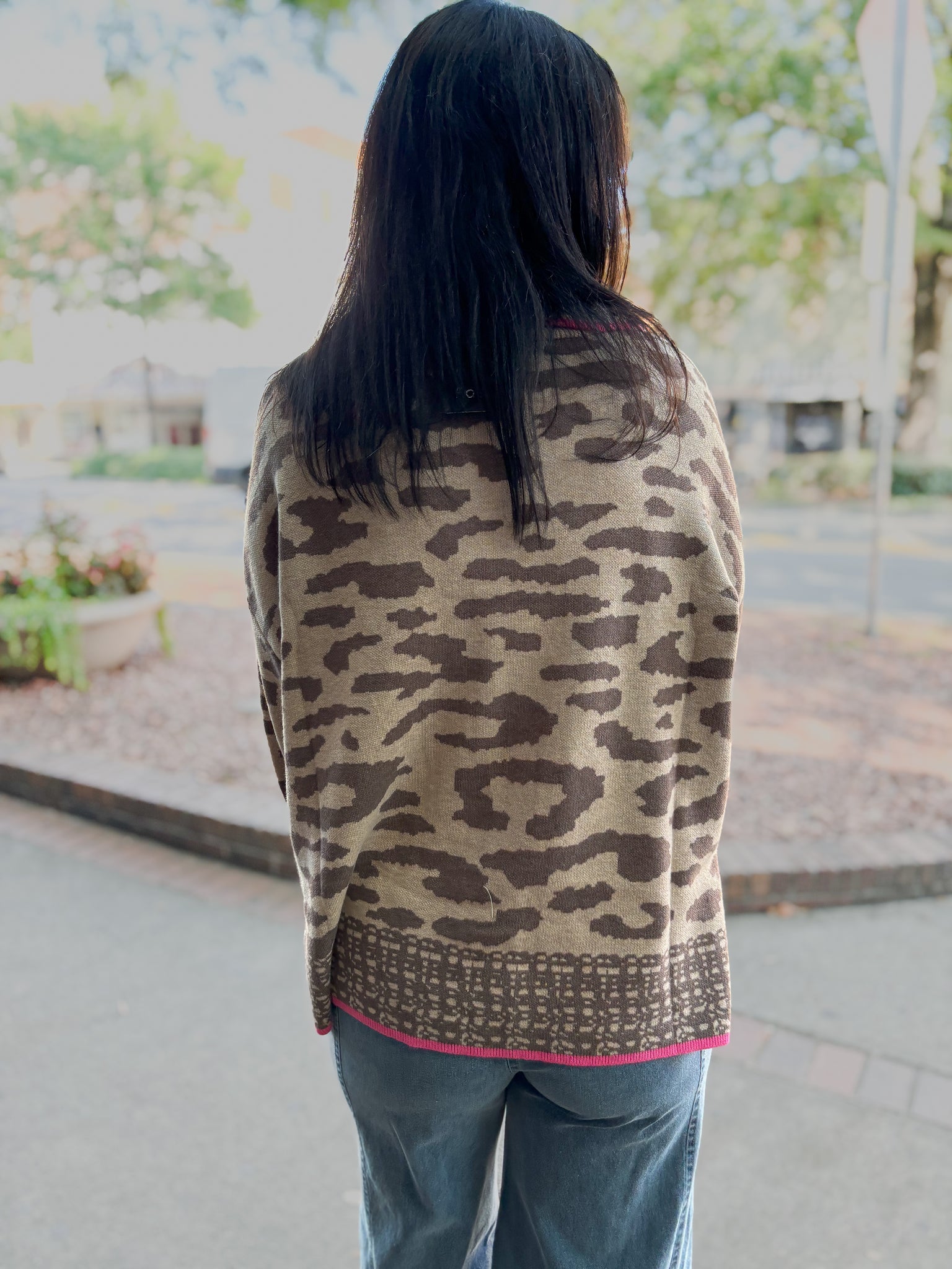 Stay cozy and chic in this half-zip wool blend leopard sweater. With its bold animal print and soft, warm fabric, this sweater offers a perfect mix of comfort and style. The half-zip design adds versatility, making it easy to layer or wear on its own for a fashion-forward look.