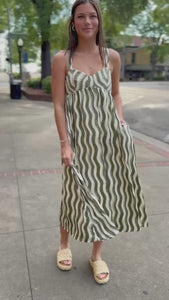 Smocked Bodice Tie Shoulder Strap Maxi Dress
