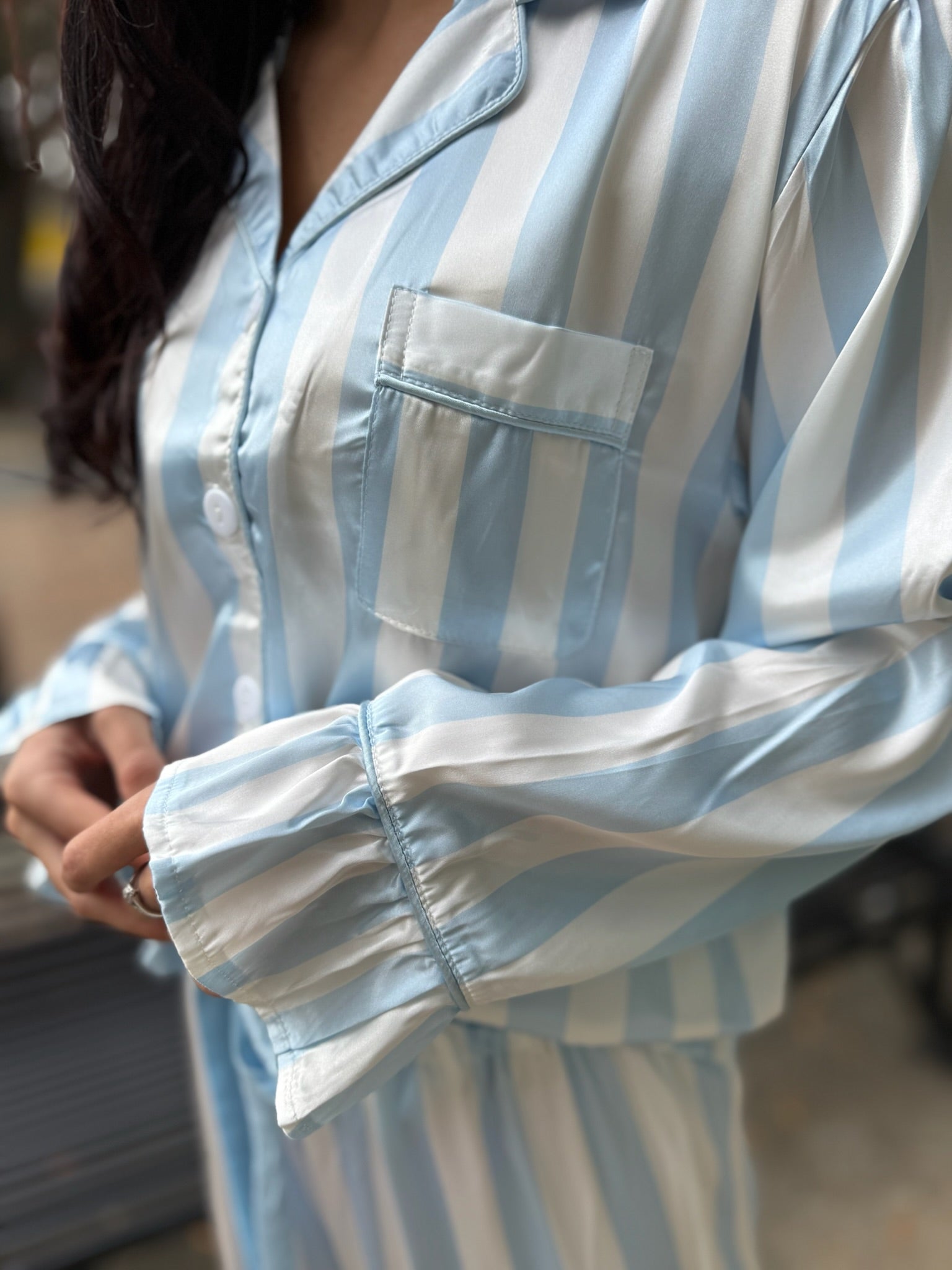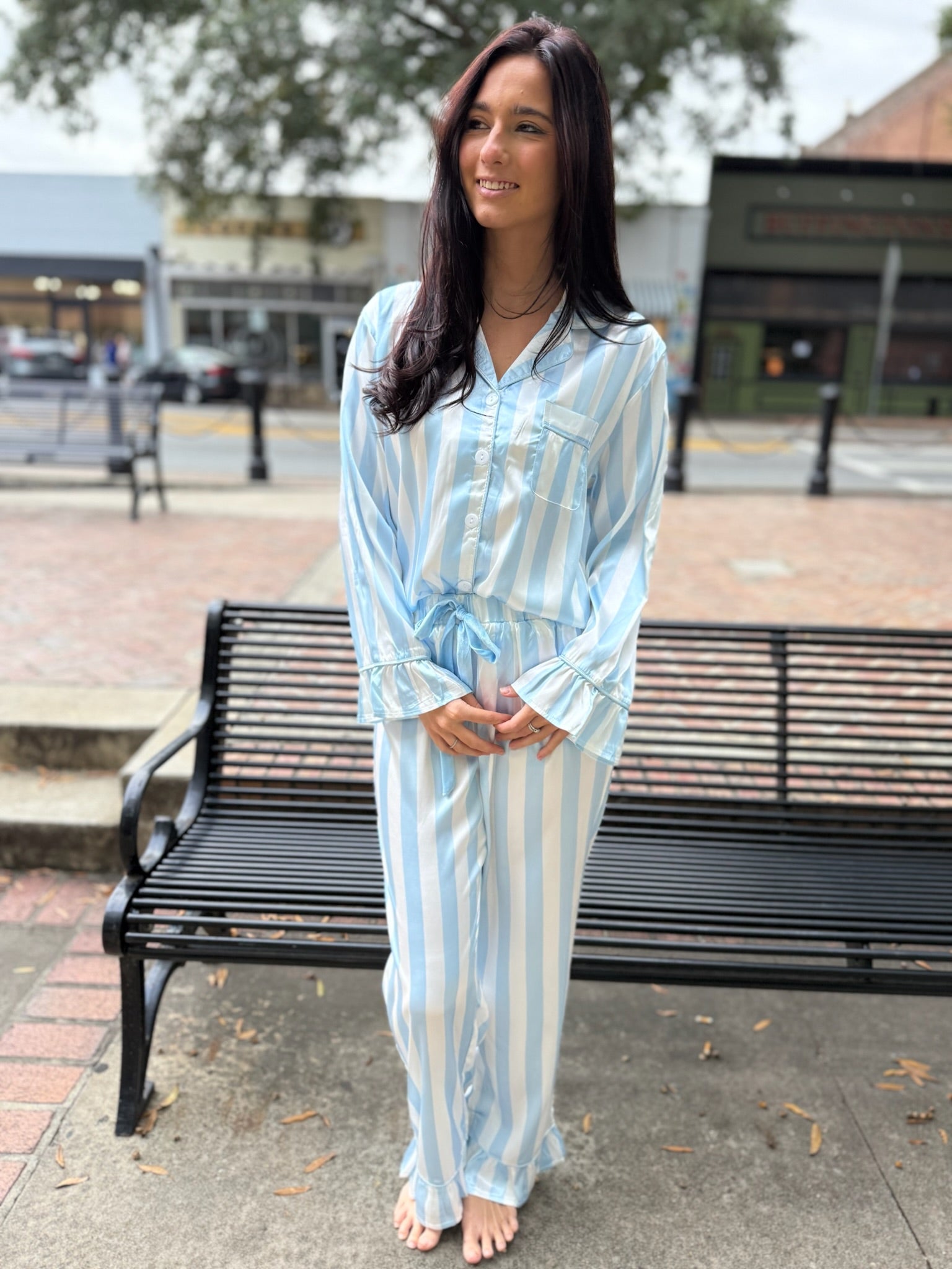 Luxuriously Soft Satin: Crafted from premium satin fabric, these pajamas offer a silky-smooth feel that glides over your skin for a comfortable, indulgent night's sleep. Elegant Velvet Waistband Ties: Featuring velvet ties on the waistband, these pajamas add a touch of sophistication.