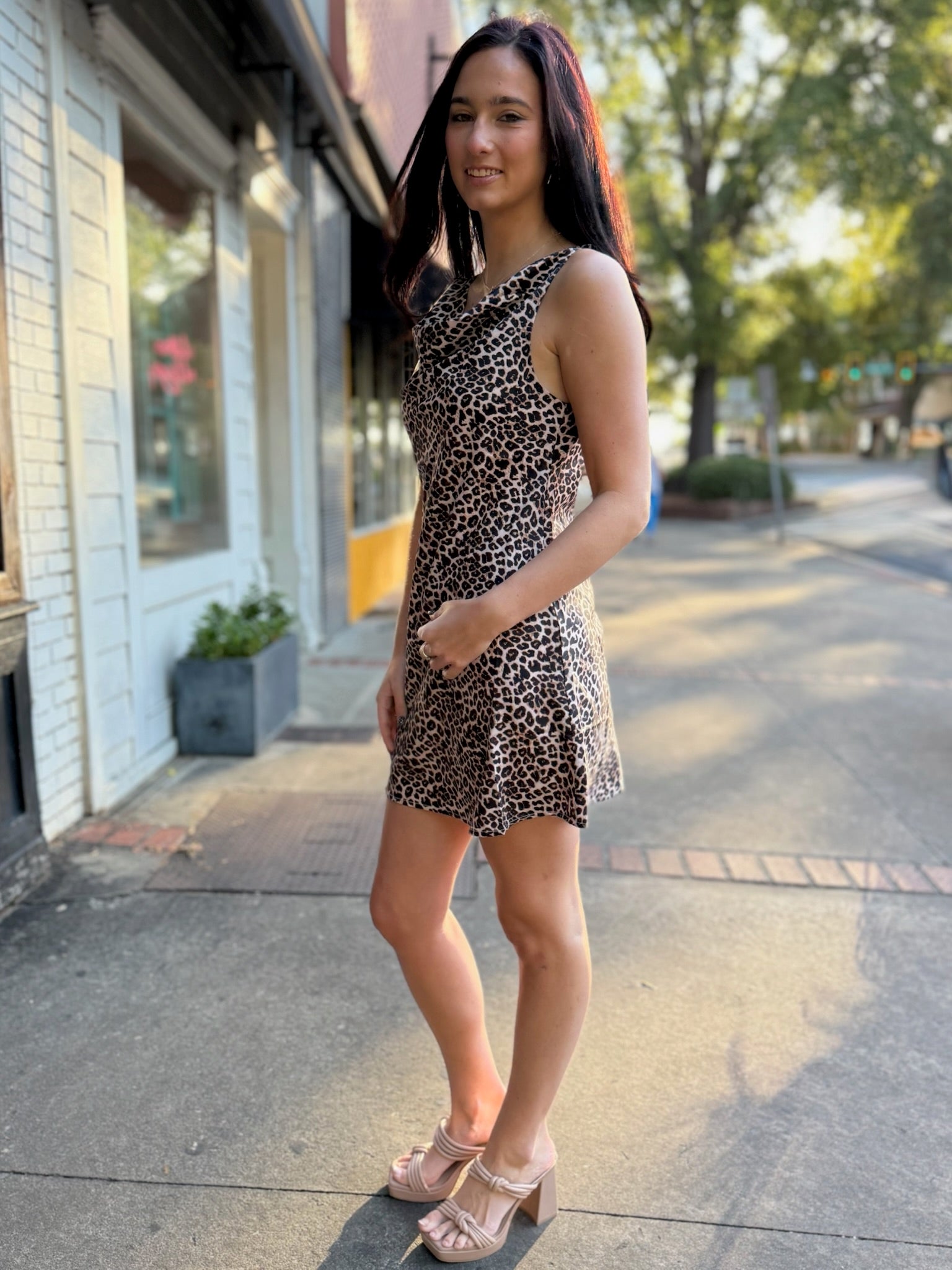 Taupe Combo Animal Print Cowl Neck Fit & Flare Dress
