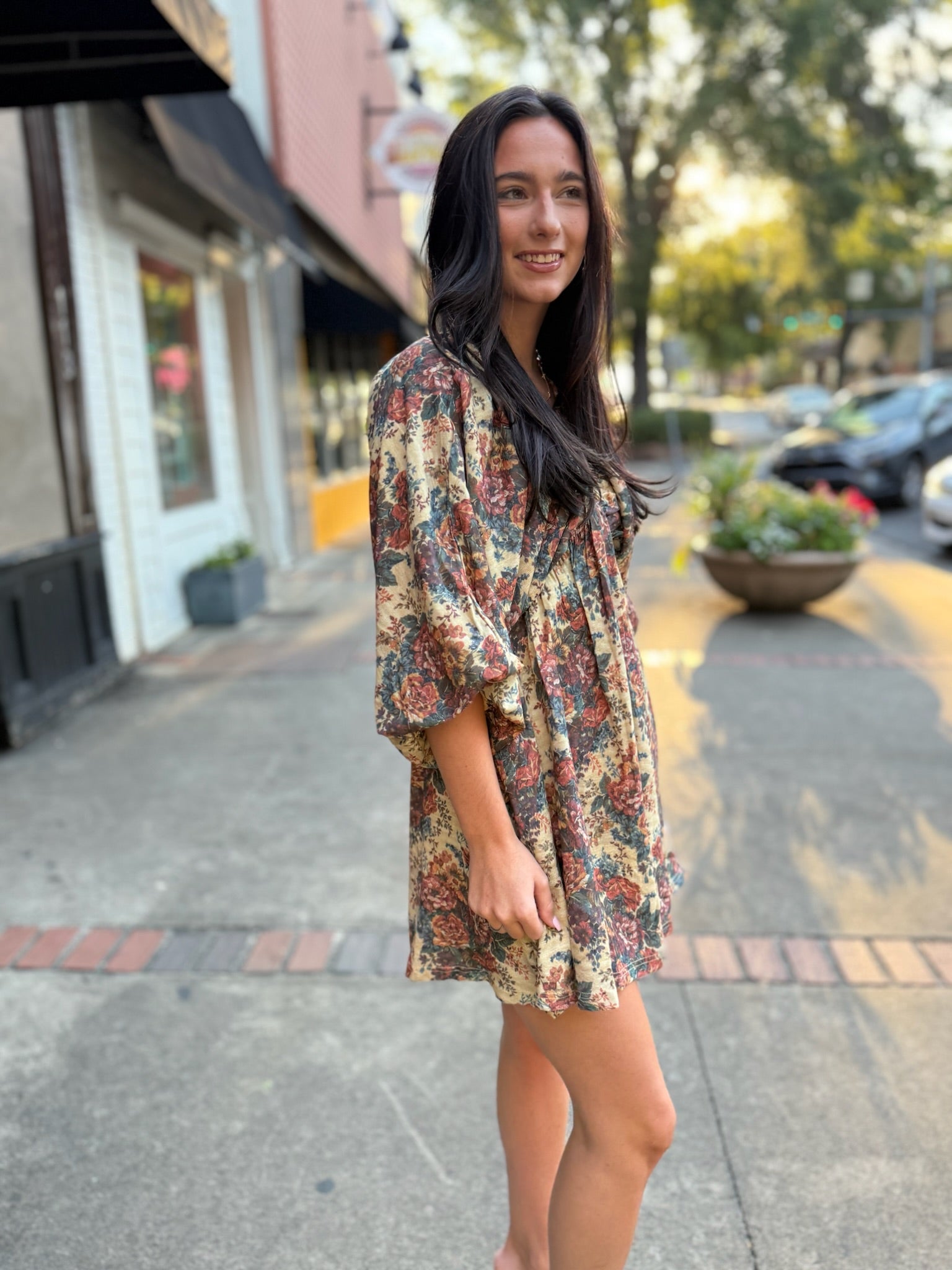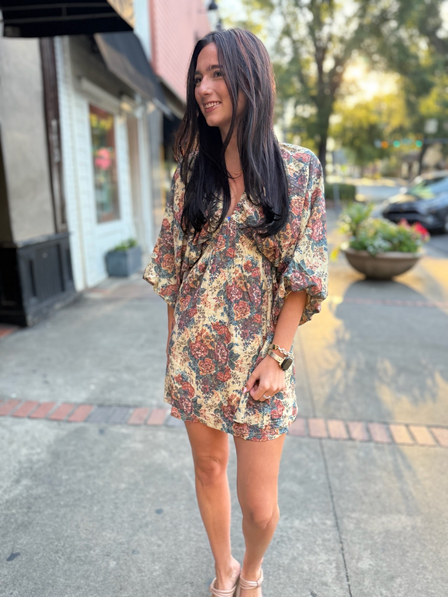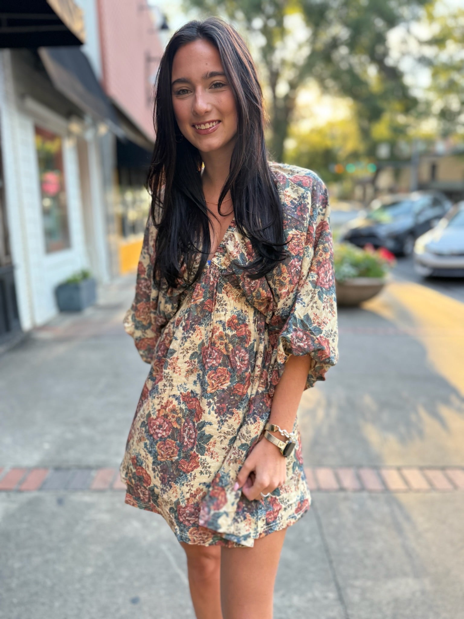 A romantic nod to timeless florals, the Vintage Rose Garden Dress is full of bohemian charm. Designed with a flowy silhouette, deep V-neckline, and billowy long sleeves, it’s the perfect piece for twirling through weekends, festivals, or casual brunch dates. The rich floral print adds a touch of vintage elegance, making it an easy standout in your wardrobe.