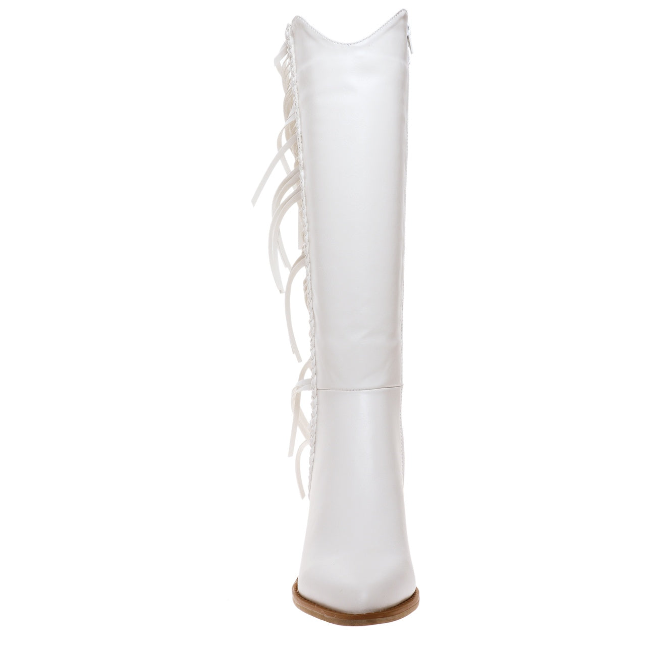 White western boots with fringe on one side.