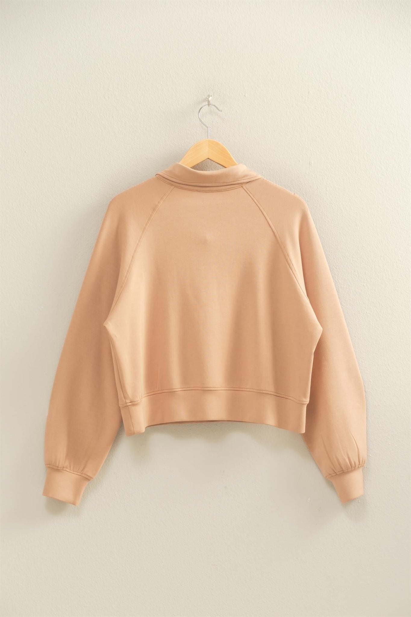 Dark Taupe Double Knit Half Zip High Neck Collar Sweatshirt