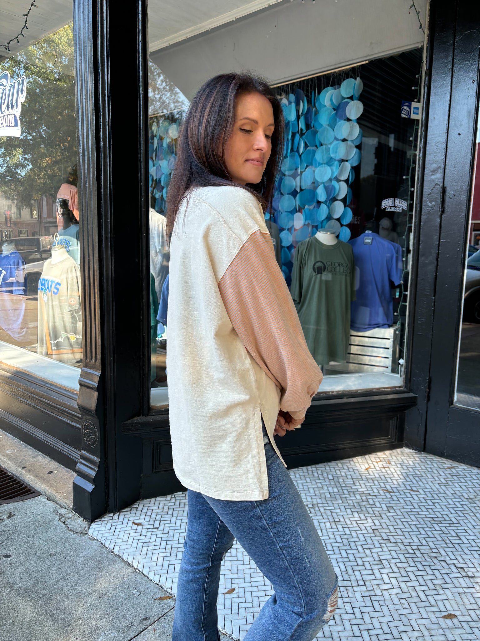 Earthy Color Mix Terry Knit Pullover
