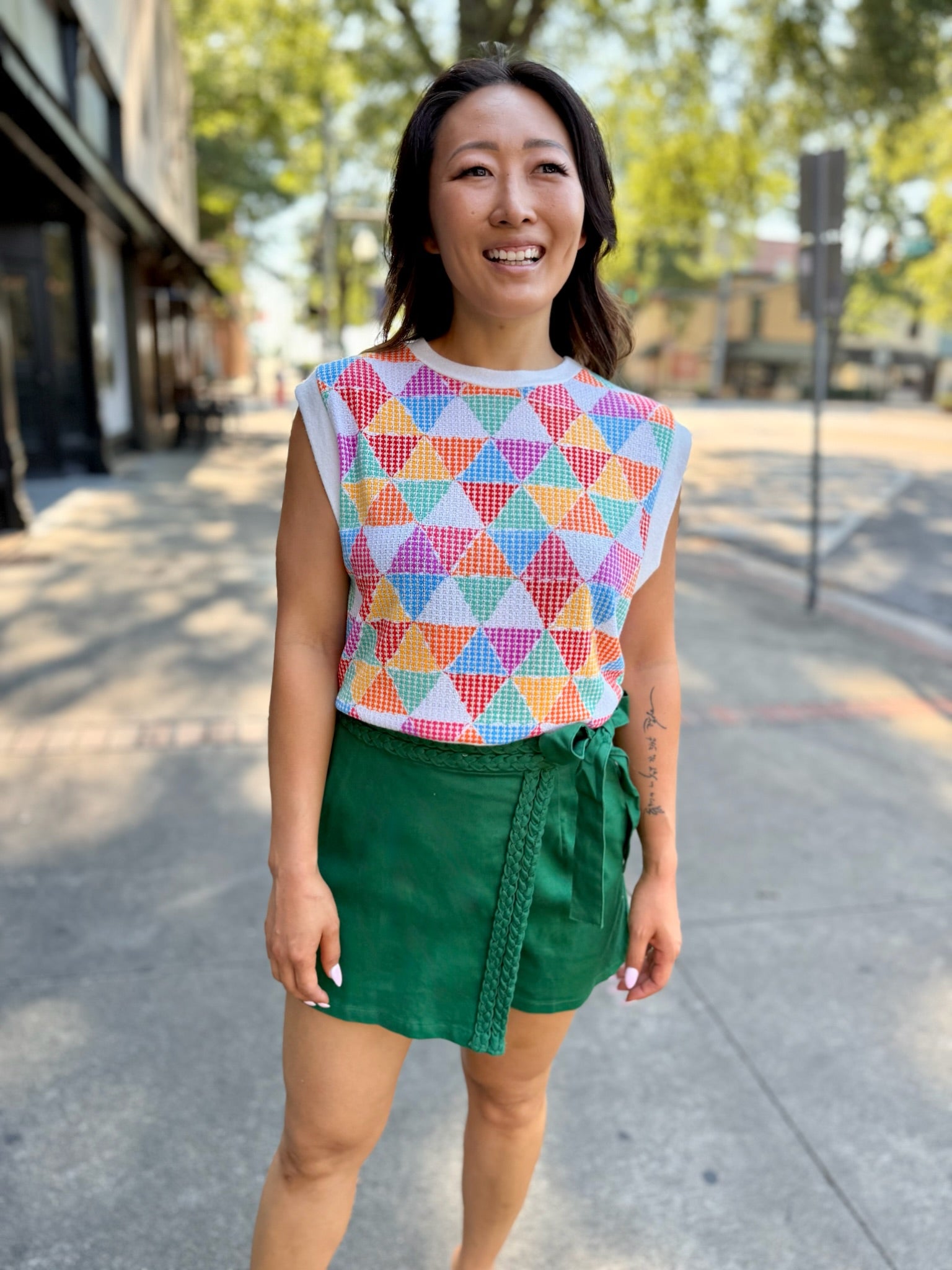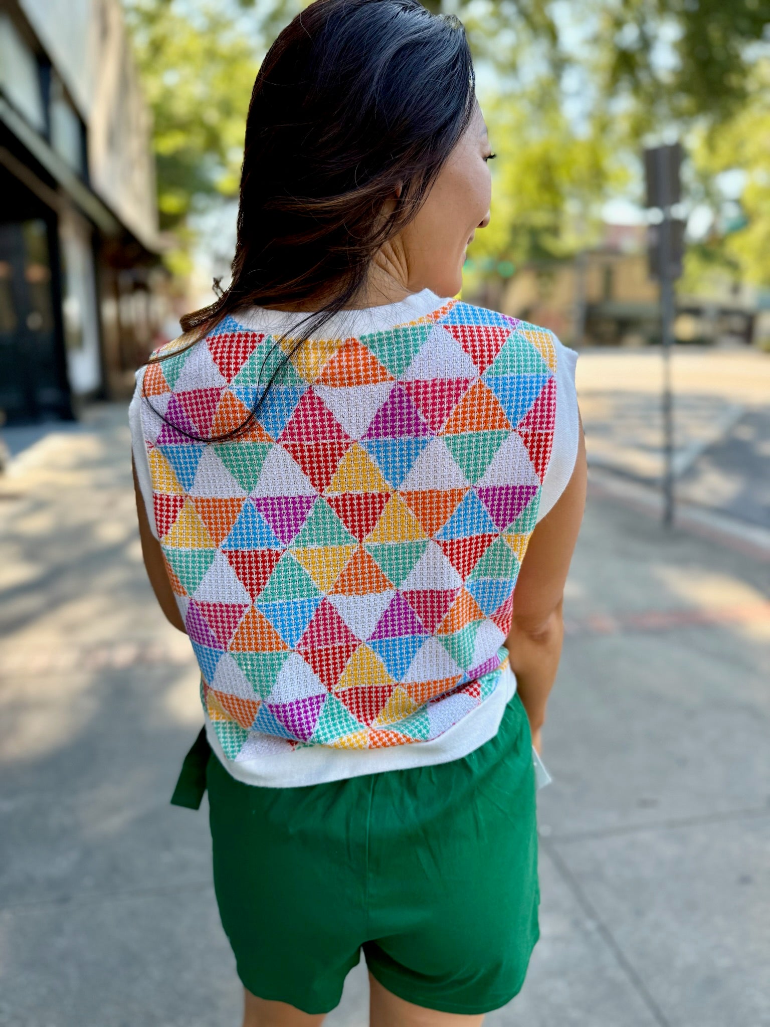 Bold geometry meets effortless comfort in The GeoFlow Color Block Knit.