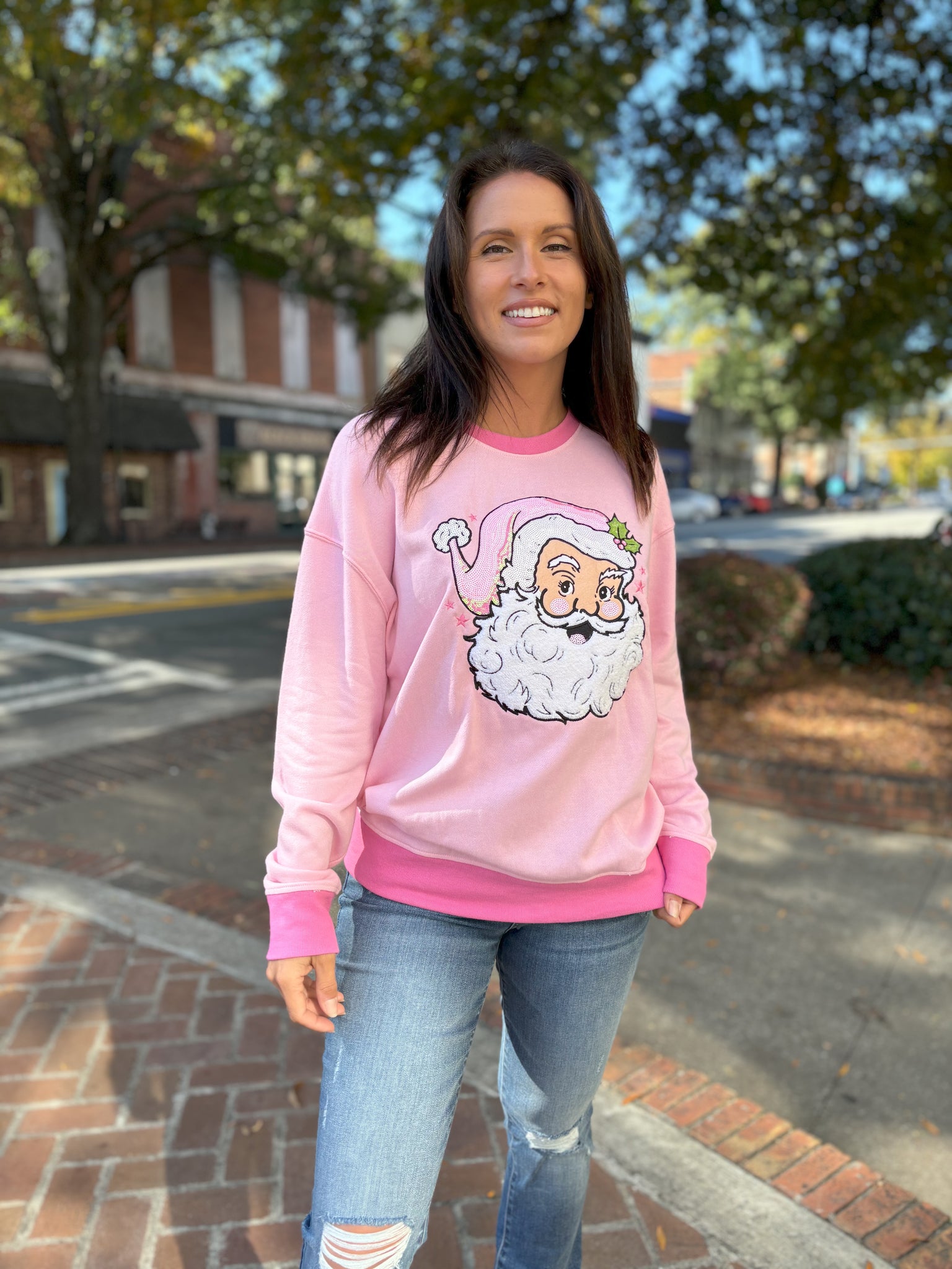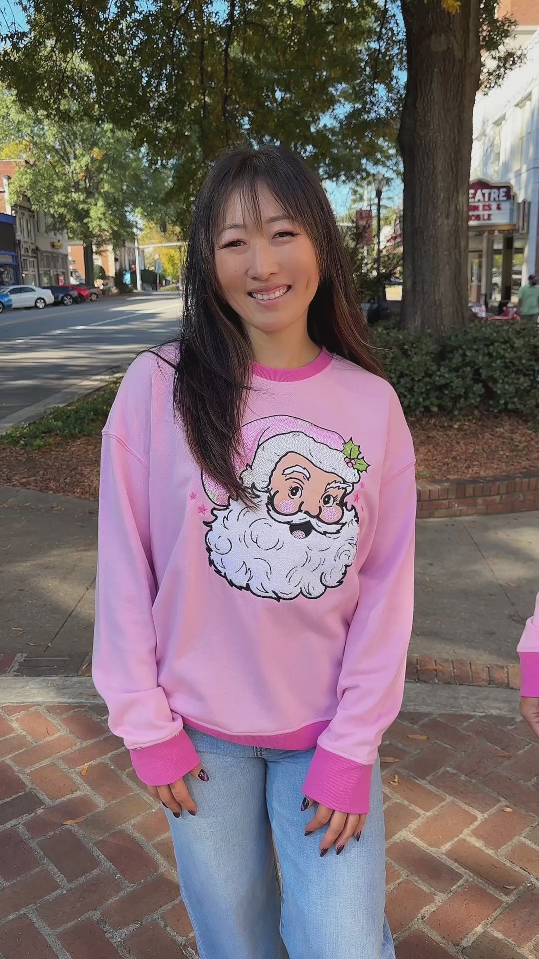 Spread some holiday cheer with this adorable pink sweatshirt featuring a playful Santa applique! Perfect for cozying up during chilly days or festive gatherings, it combines comfort with a touch of whimsy. Ideal for adding a fun flair to your winter wardrobe!