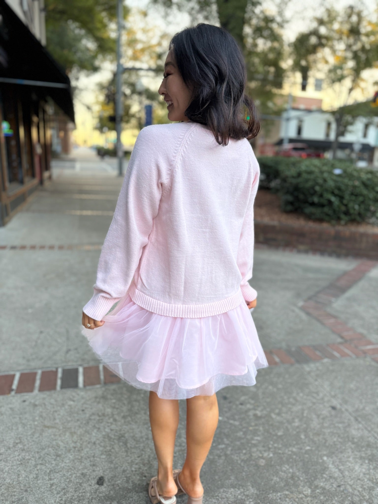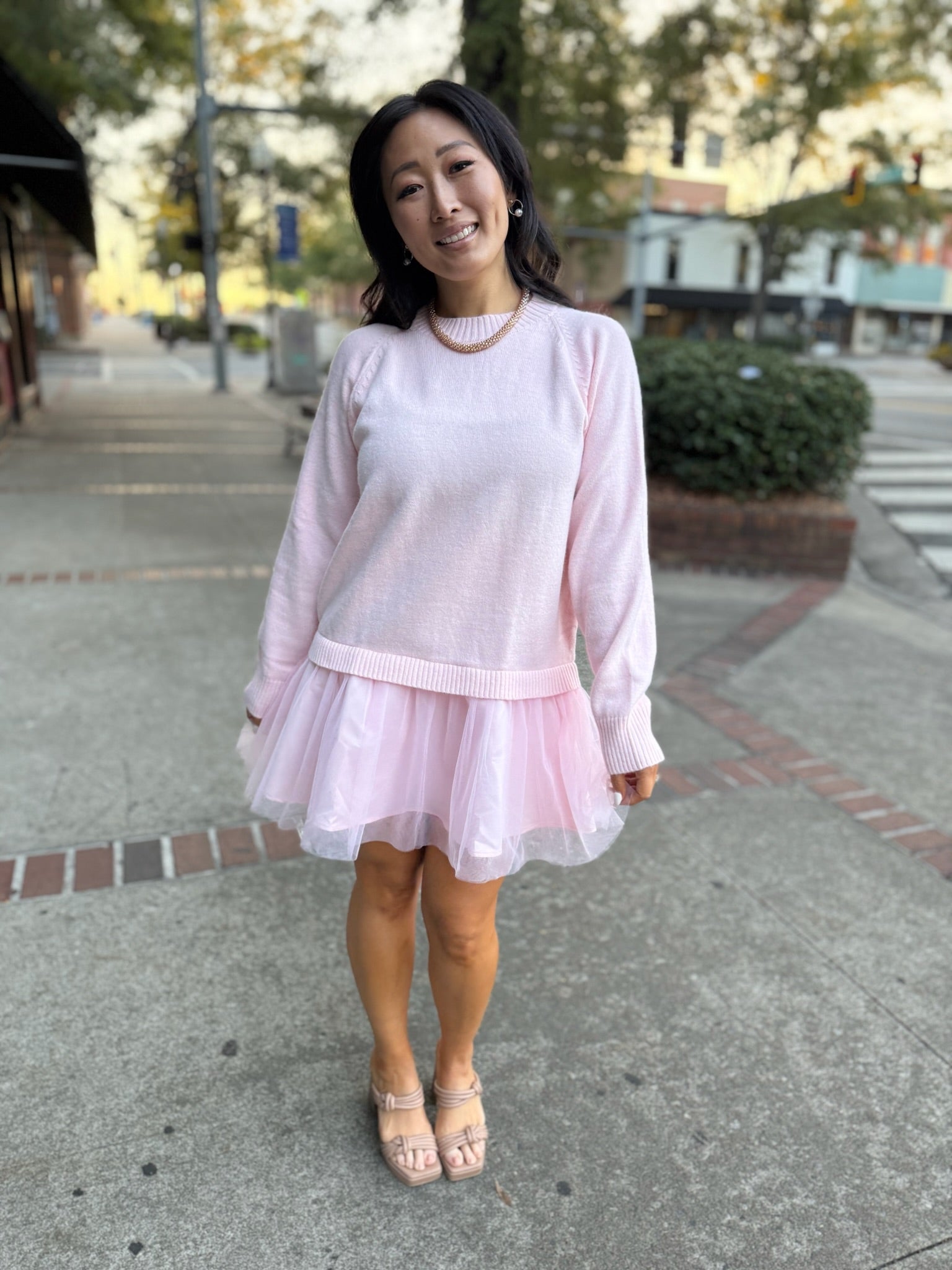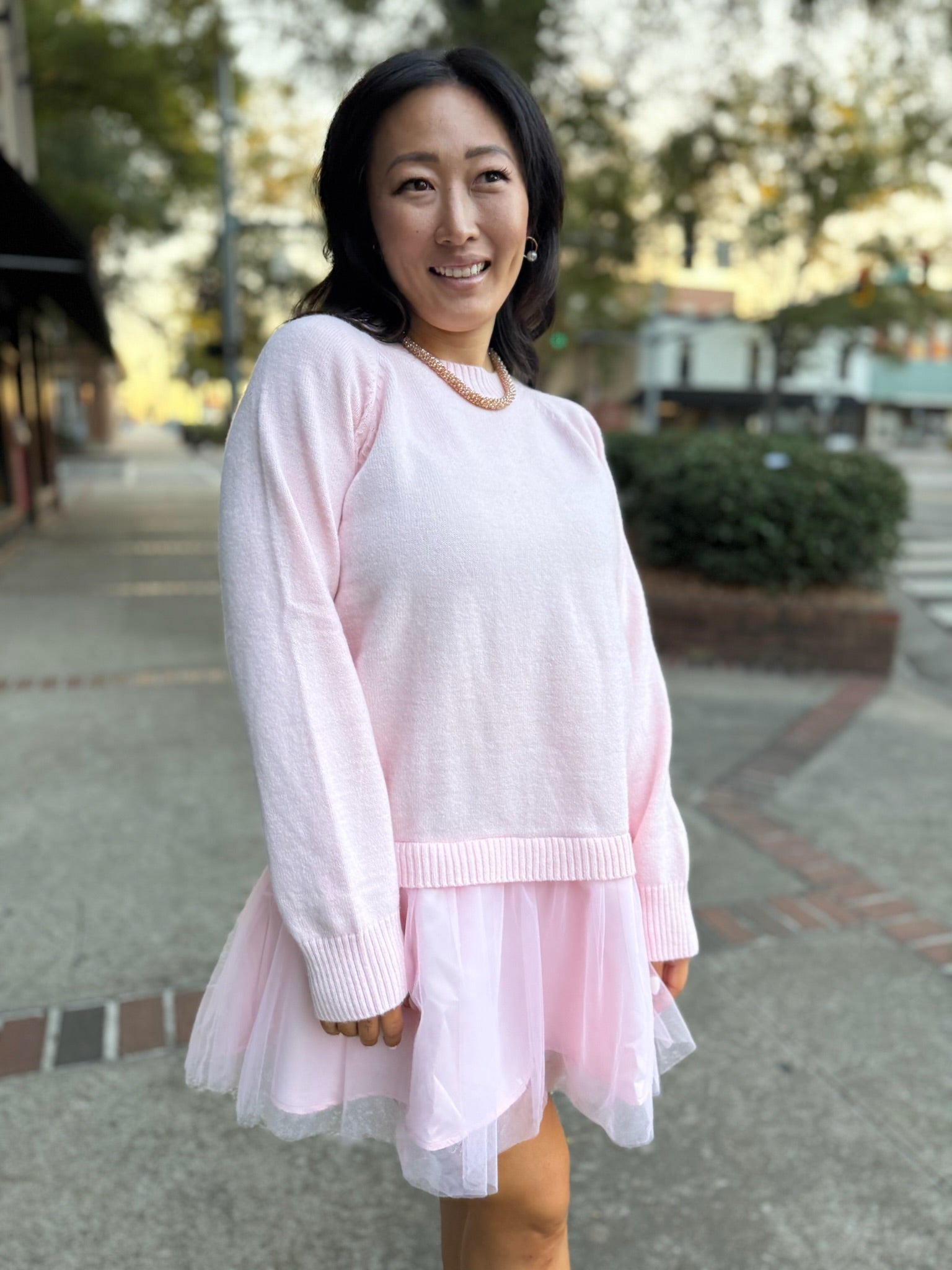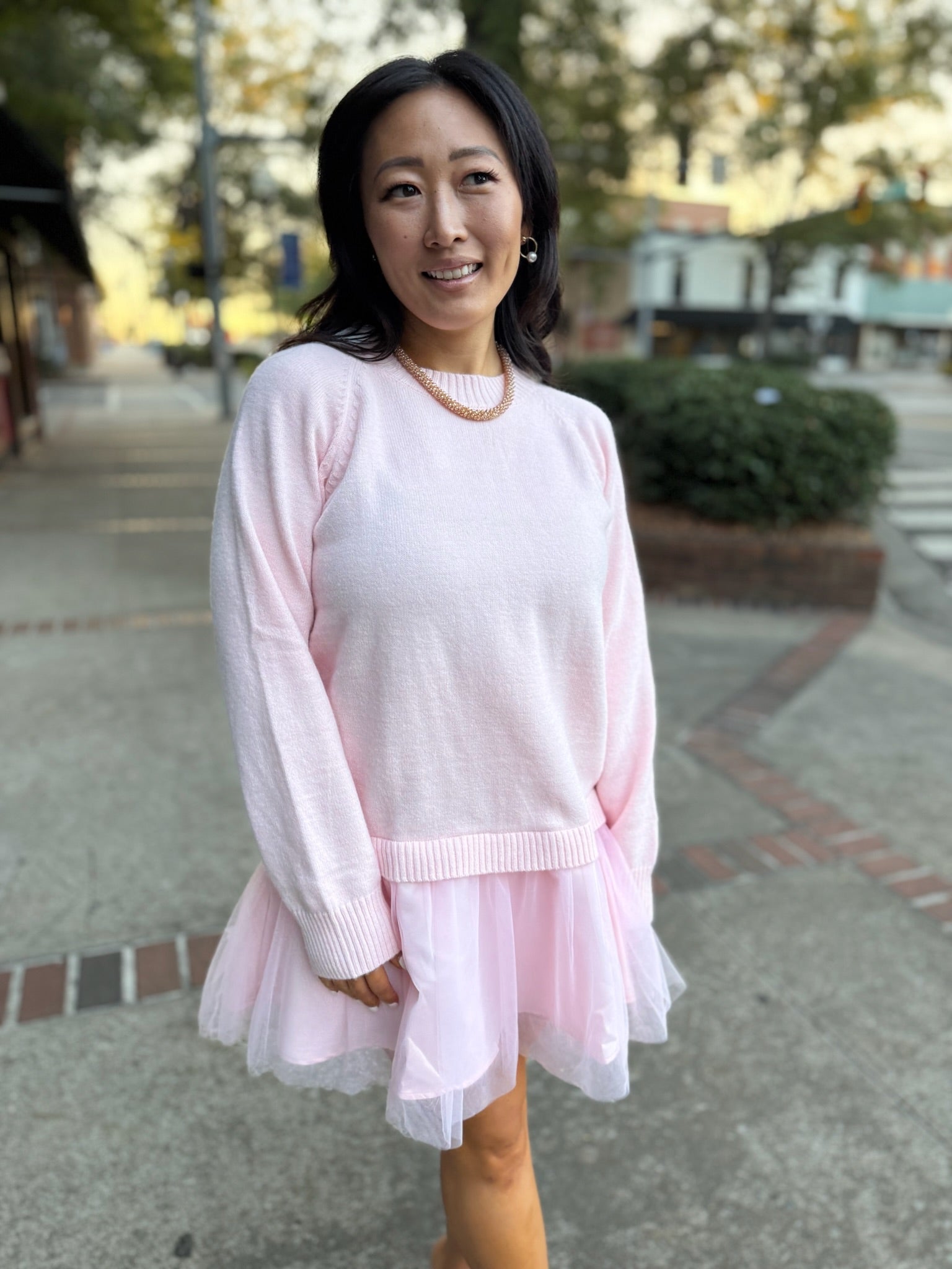 Soft, sweet, and effortlessly charming — the Ballet Blush Knit Dress brings cozy meets couture. This darling design pairs a plush pink knit sweater top with a dreamy layered tulle skirt, giving you the perfect balance of comfort and femininity. Whether you’re dressing up for brunch or twirling into date night, this piece is pure pastel perfection.