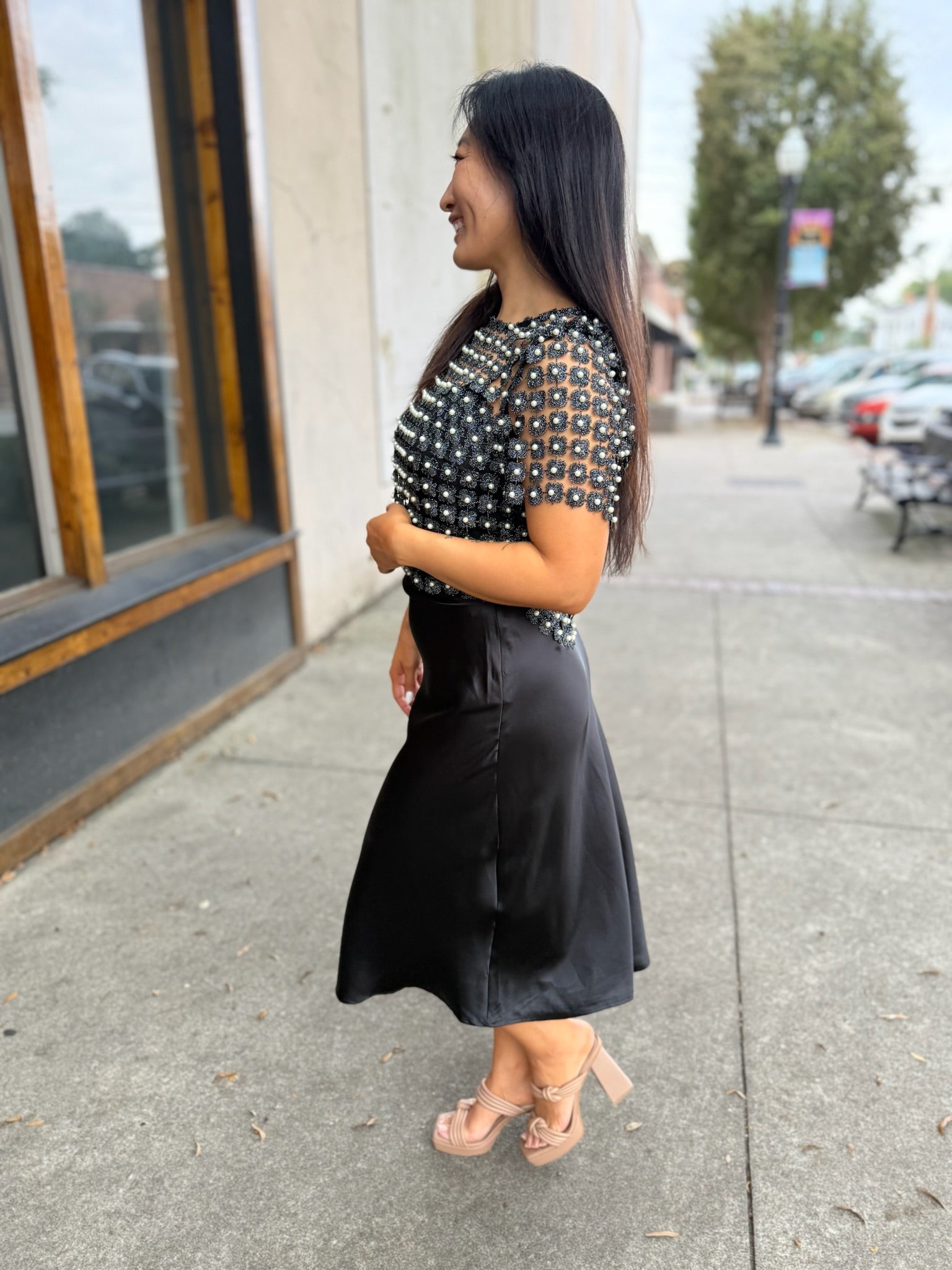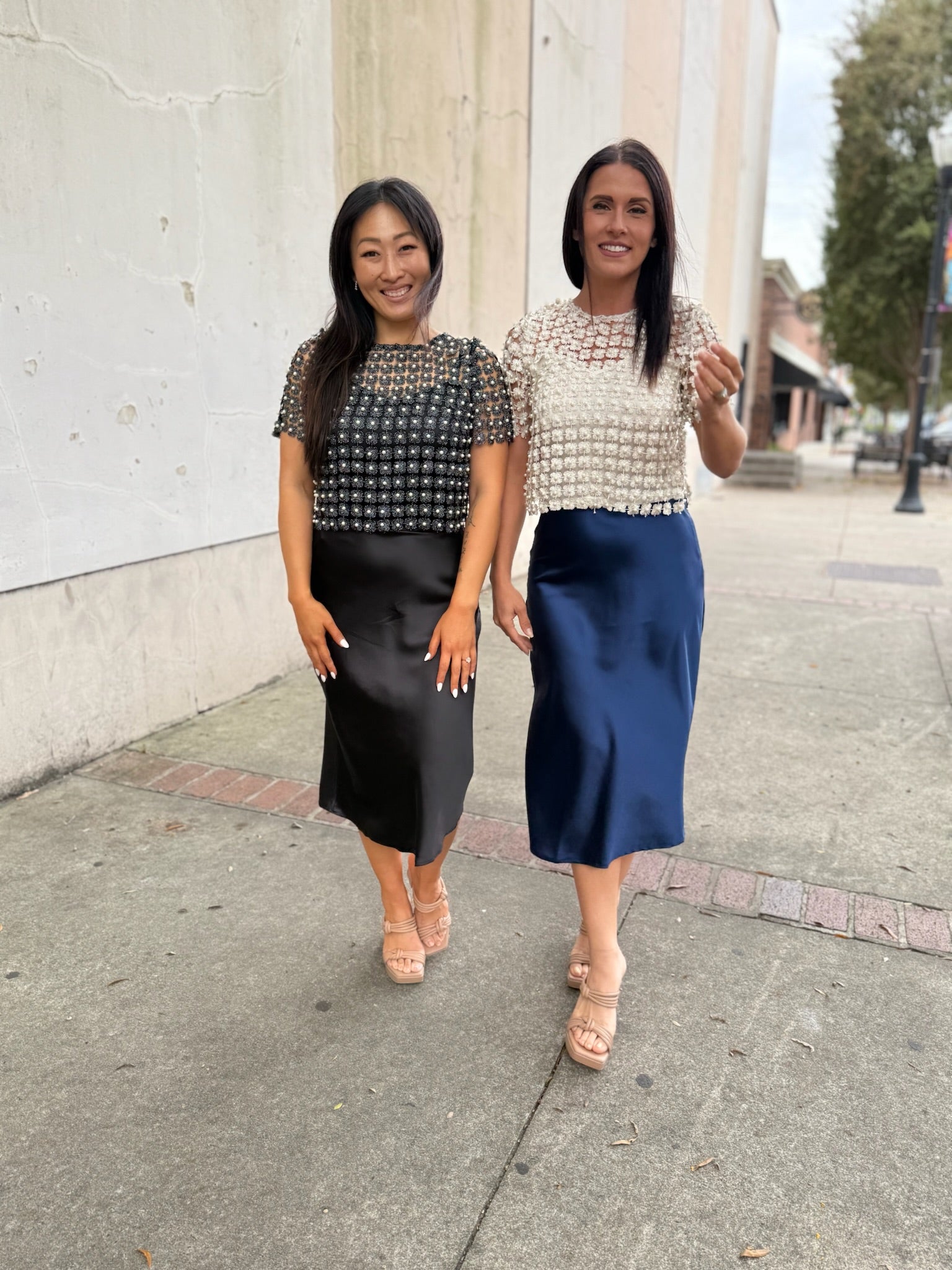 Effortlessly elegant, the Satin Bias Midi Skirt drapes beautifully with a silky sheen that catches every light. Designed with a flattering bias cut, it moves gracefully with every step for a chic, feminine silhouette. Perfect for dressing up or down, this timeless piece adds a touch of luxe sophistication to any look.