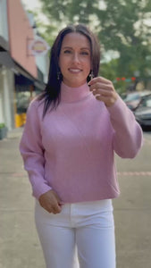 Pink Frost High Neck Diagonal Ribbed Sweater