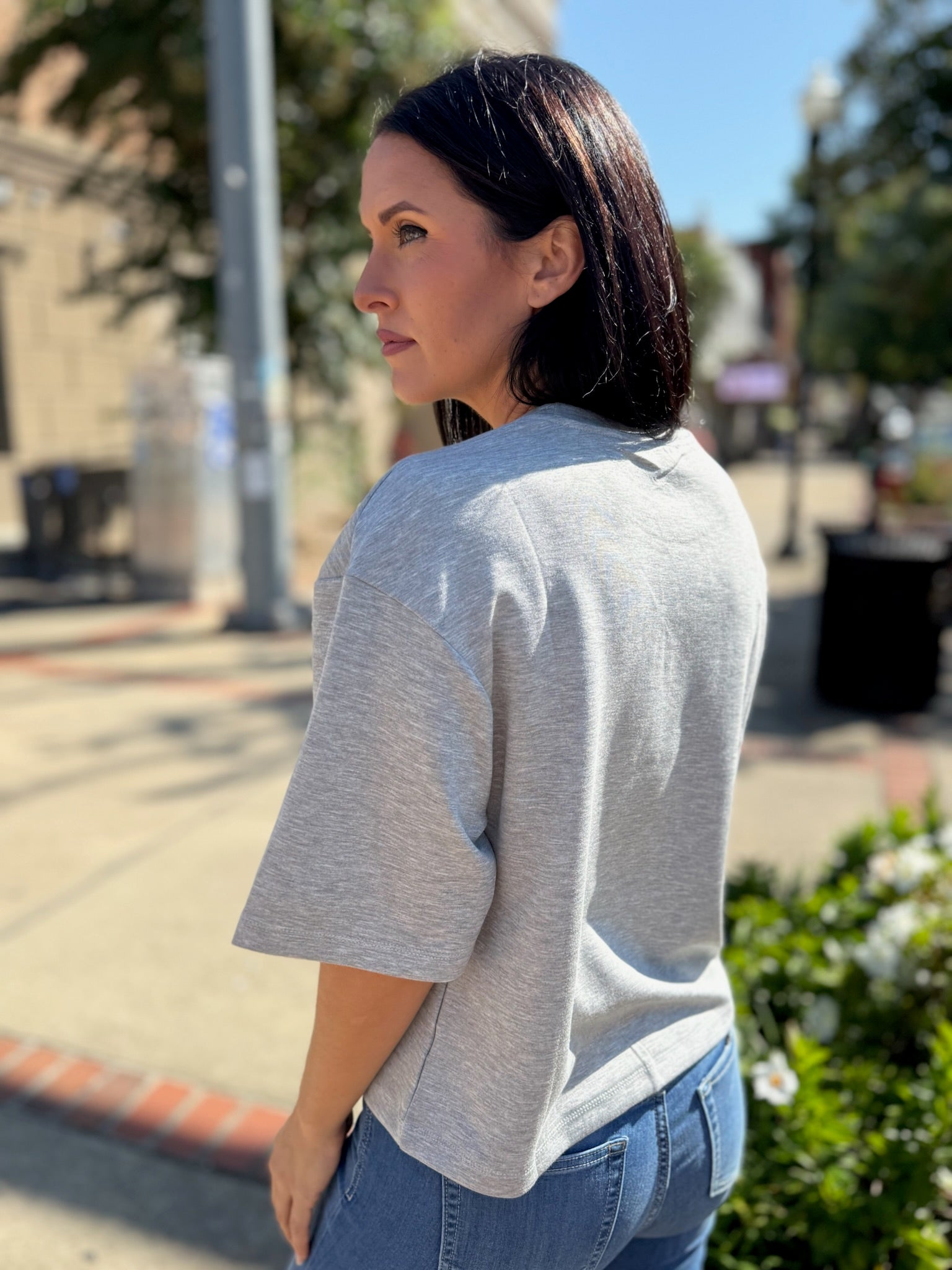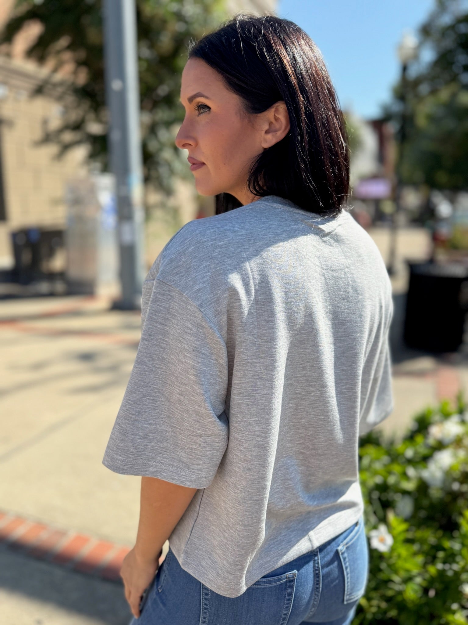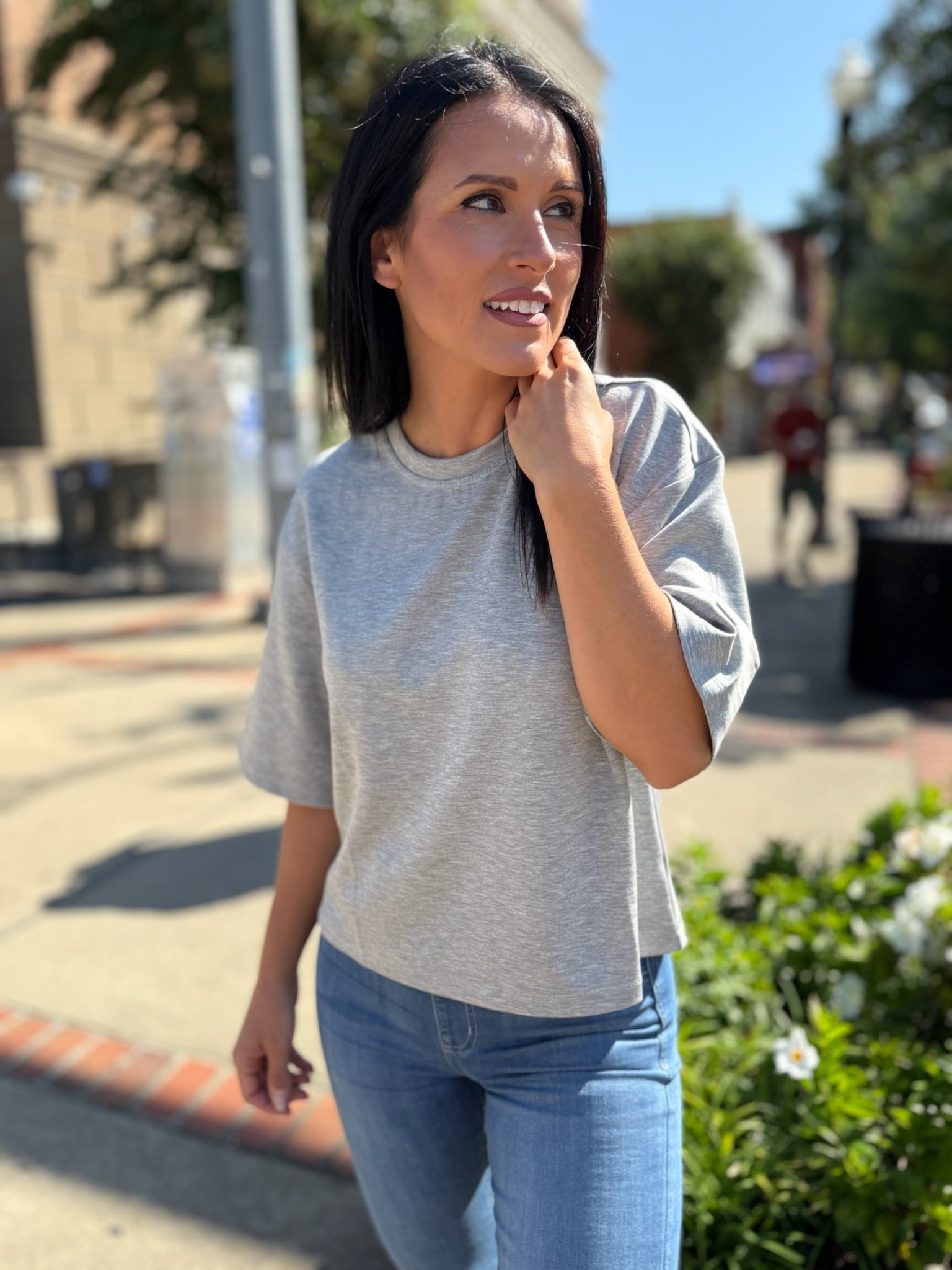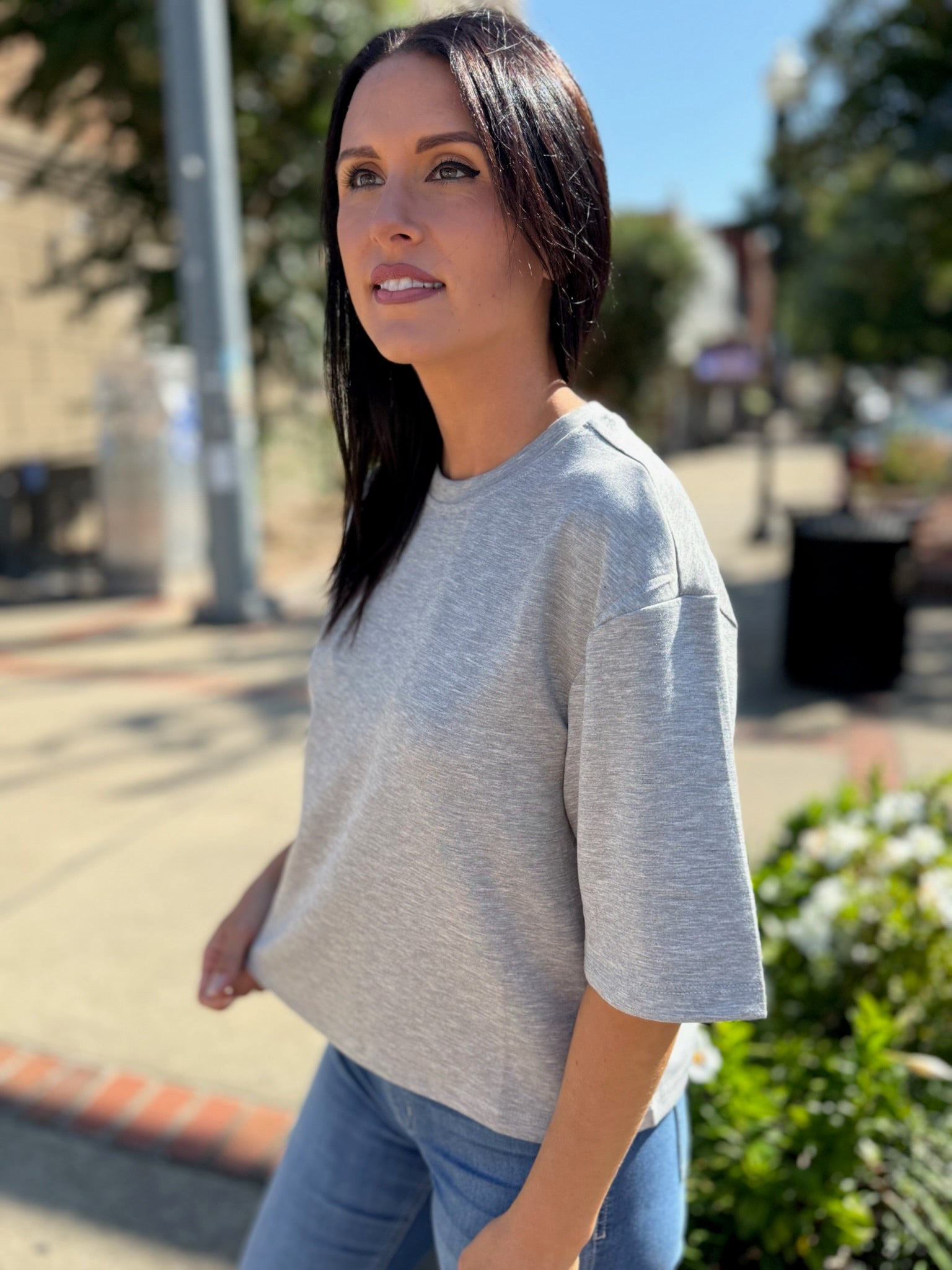 Heather Gray Double Knit Drop Shoulder Basic Top