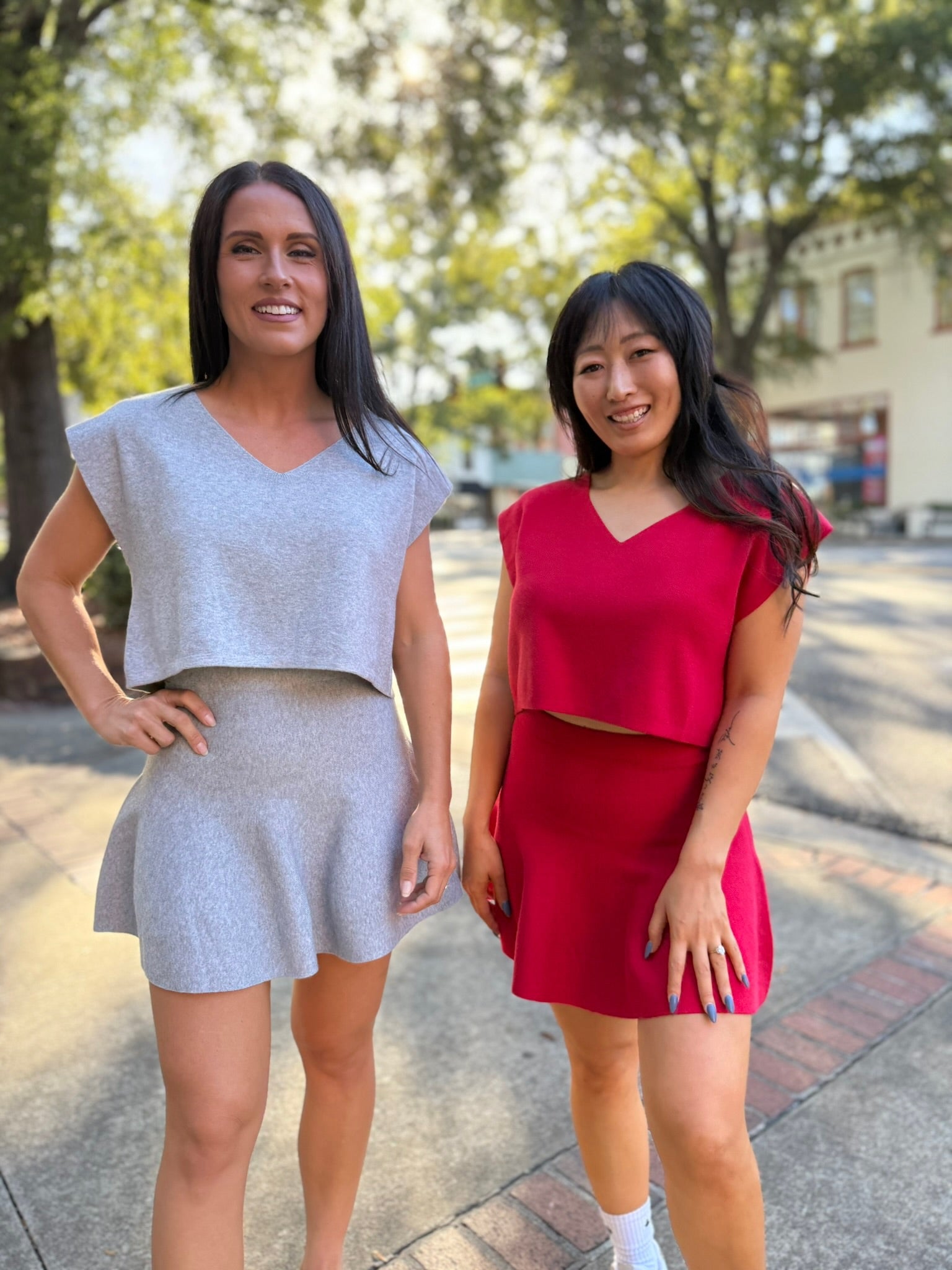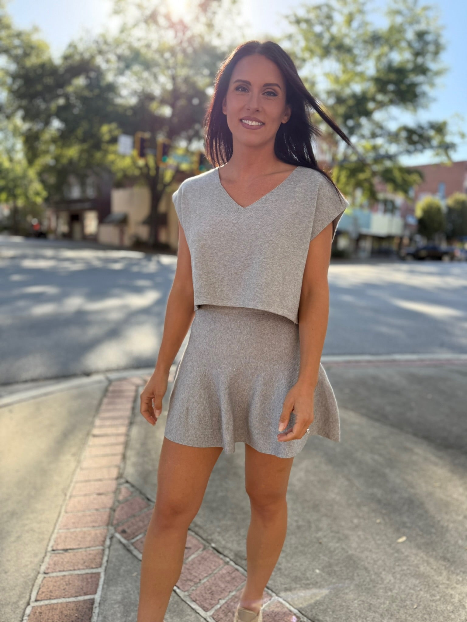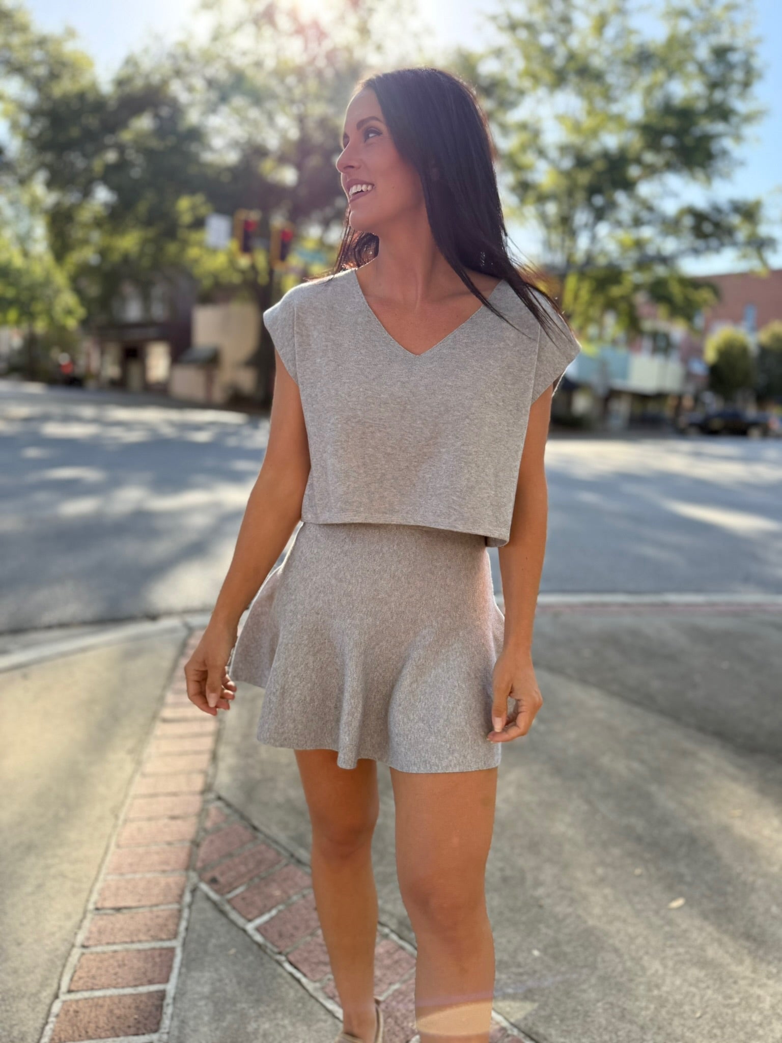 Step out in effortless style with the Chic Harmony Sweater Set. Featuring a sleeveless V-neck sweater top paired with a flirty flared mini skirt, this coordinated look is equal parts polished and playful. Soft knit fabric keeps it comfortable, while the flattering silhouette makes it perfect for brunch, date nights, or chic city strolls. Wear together for a ready-made outfit or mix and match for endless styling options.