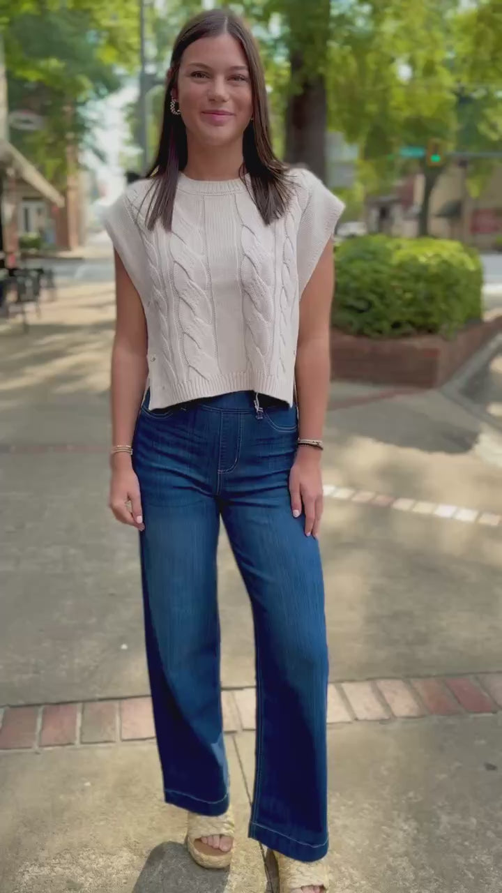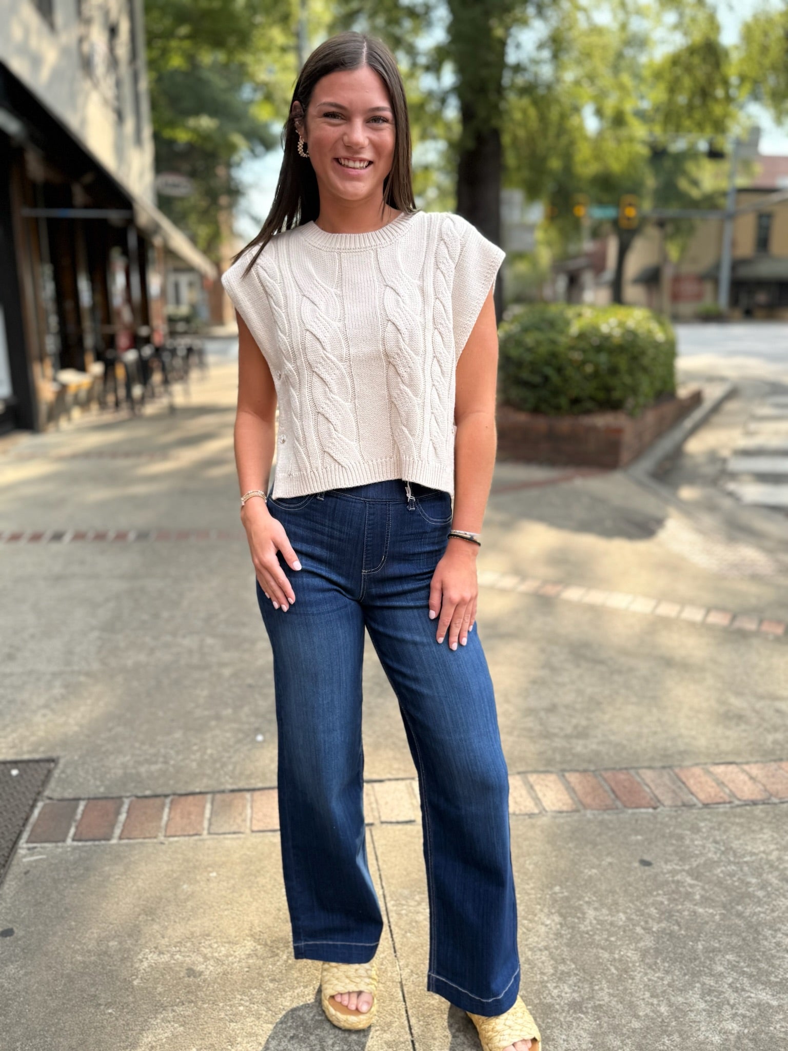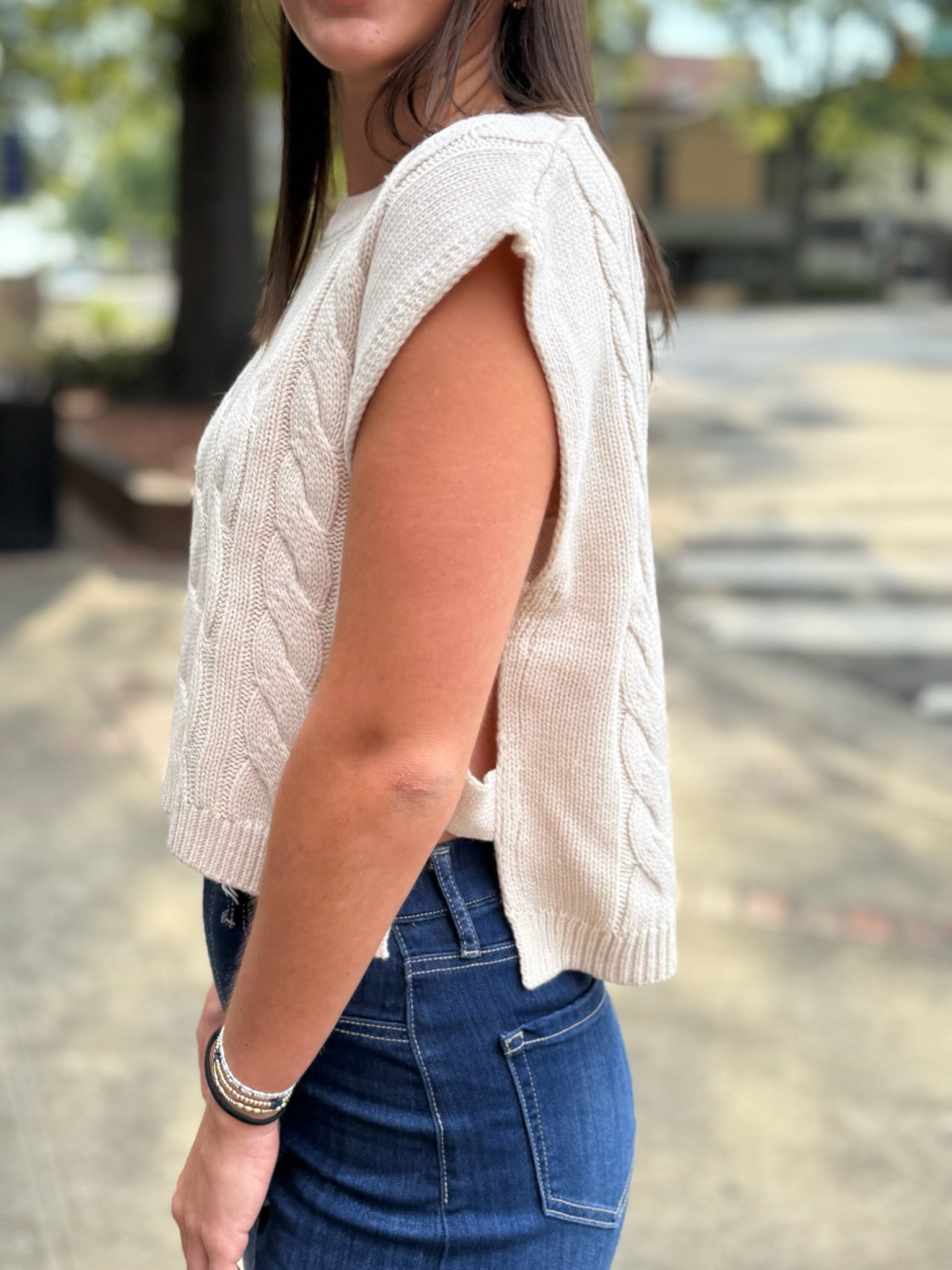 Cream Cable Knit Sleeveless Sweater With Side Buttons