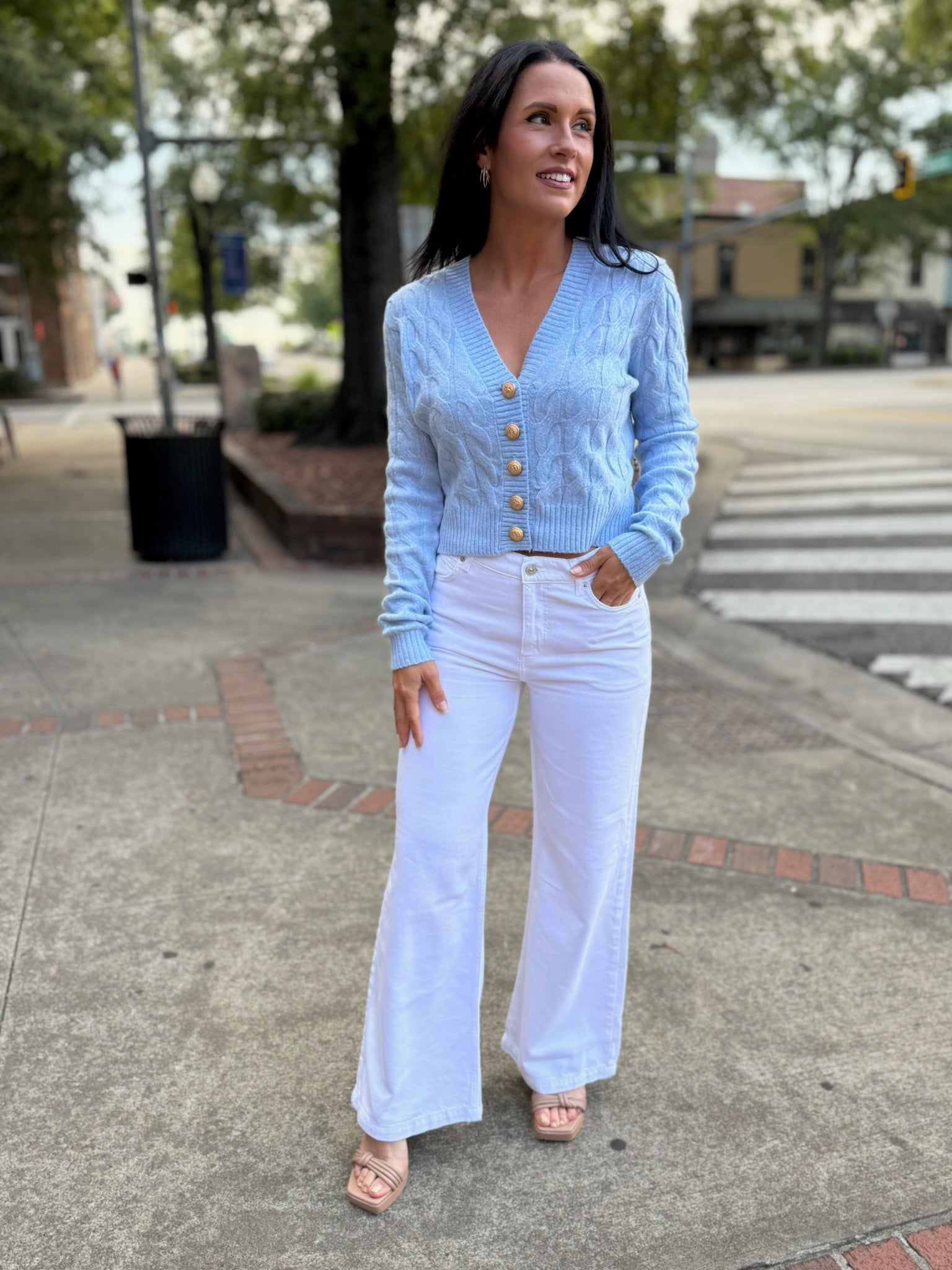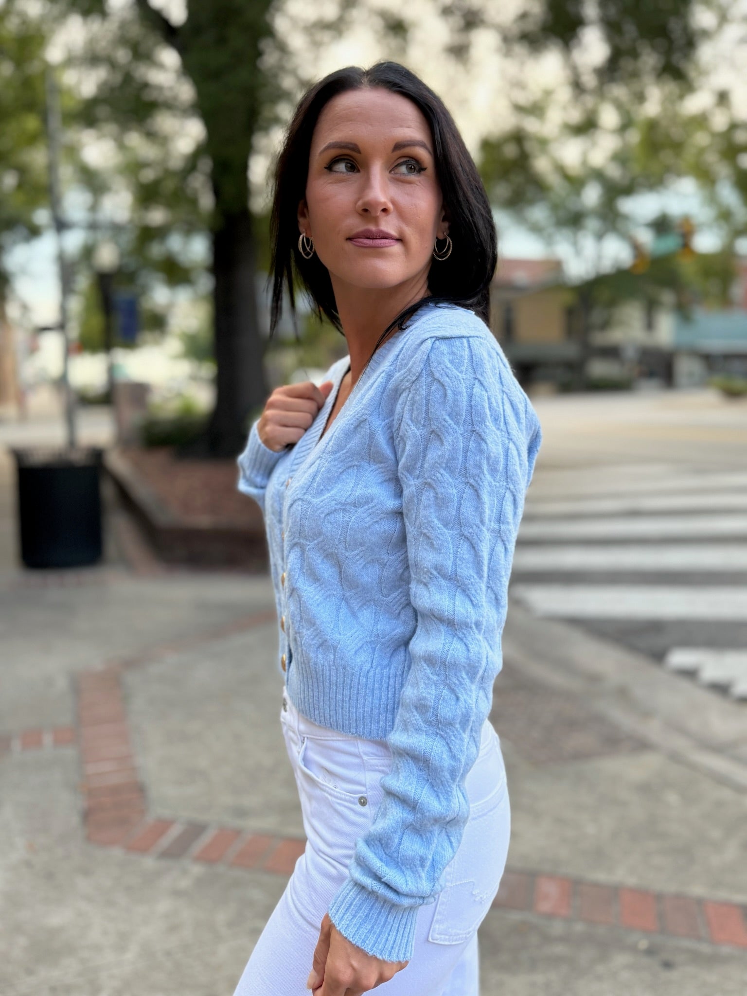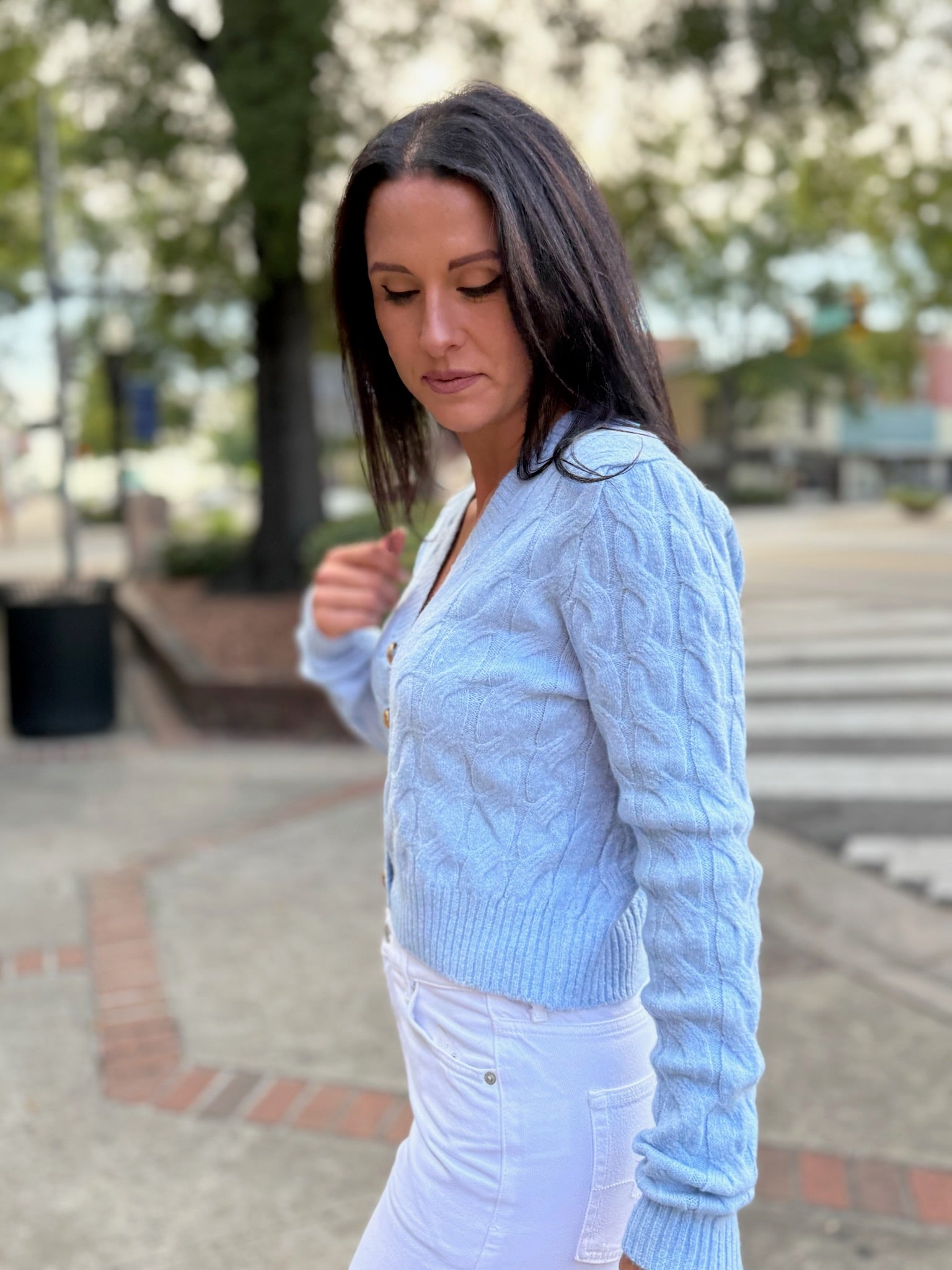This chic cardigan offers timeless appeal with its intricate cable knit pattern and frontal button detailing. Its classic silhouette ensures a comfortable fit, perfect for seasonal transitions. Pair with denim or layered over a collared shirt to elevate your casual outings or relaxed workdays.