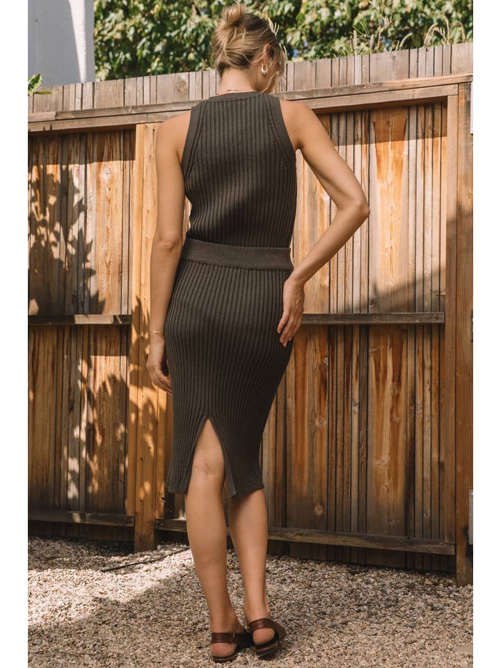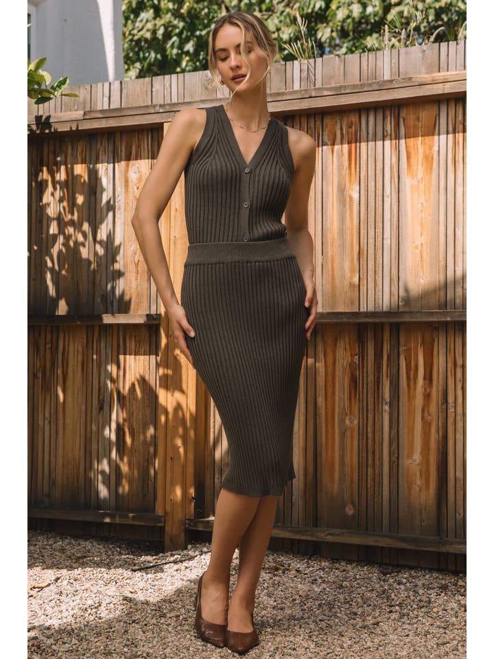 The Olive Ribbed Knit Midi Skirt is your go-to piece for chic, all-day style. Crafted from a soft, stretchy ribbed knit, it hugs your figure in all the right places while offering effortless comfort. The midi length adds a sophisticated touch, making it perfect to pair with a matching top for a sleek set or a cozy sweater for a more relaxed vibe.